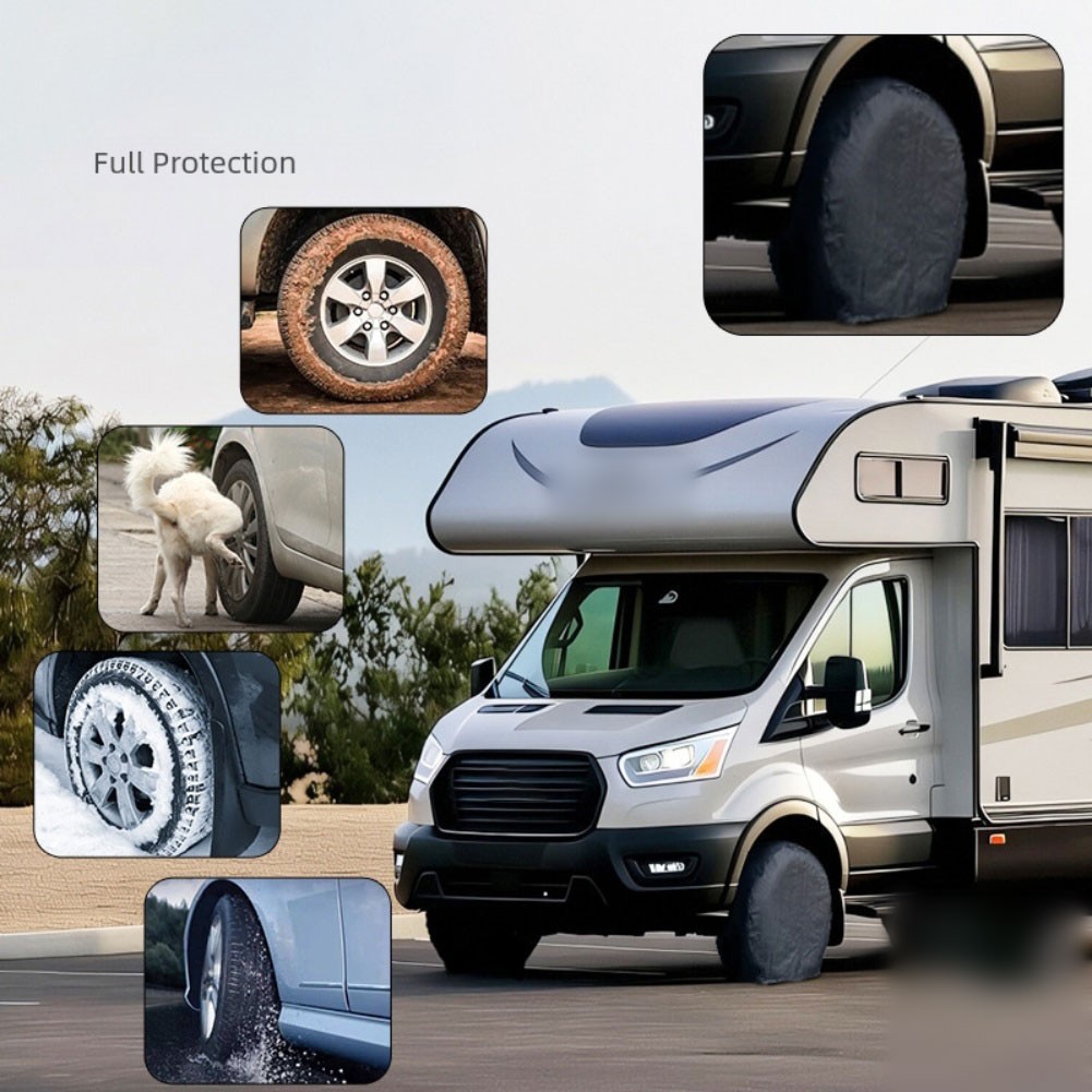 *Secure Fit: Featuring an auto-locking design with elastic cords, these tire covers install securely in seconds. Even in windy weather, they stay securely in place, giving you peace of mind.