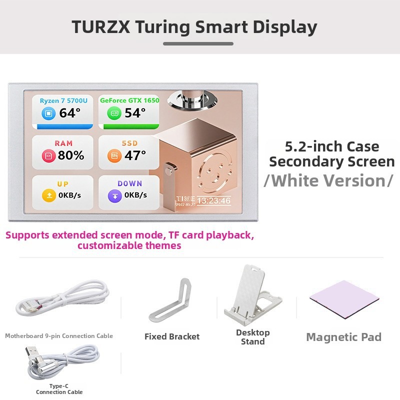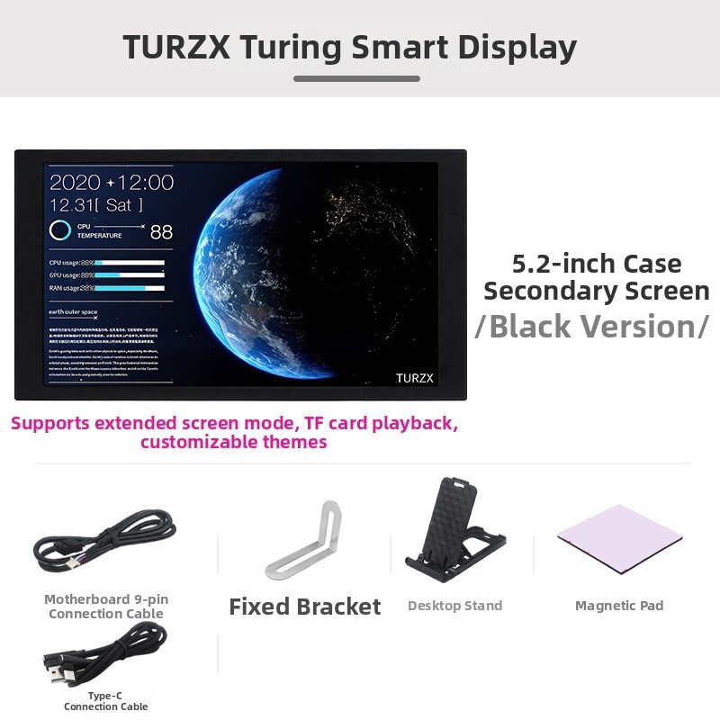 *Compact Size: The Turing Smart Display features a 5.2-inch screen, providing an ideal balance of portability and usability, making it perfect for adding an extra display to your workspace without taking up too much space.