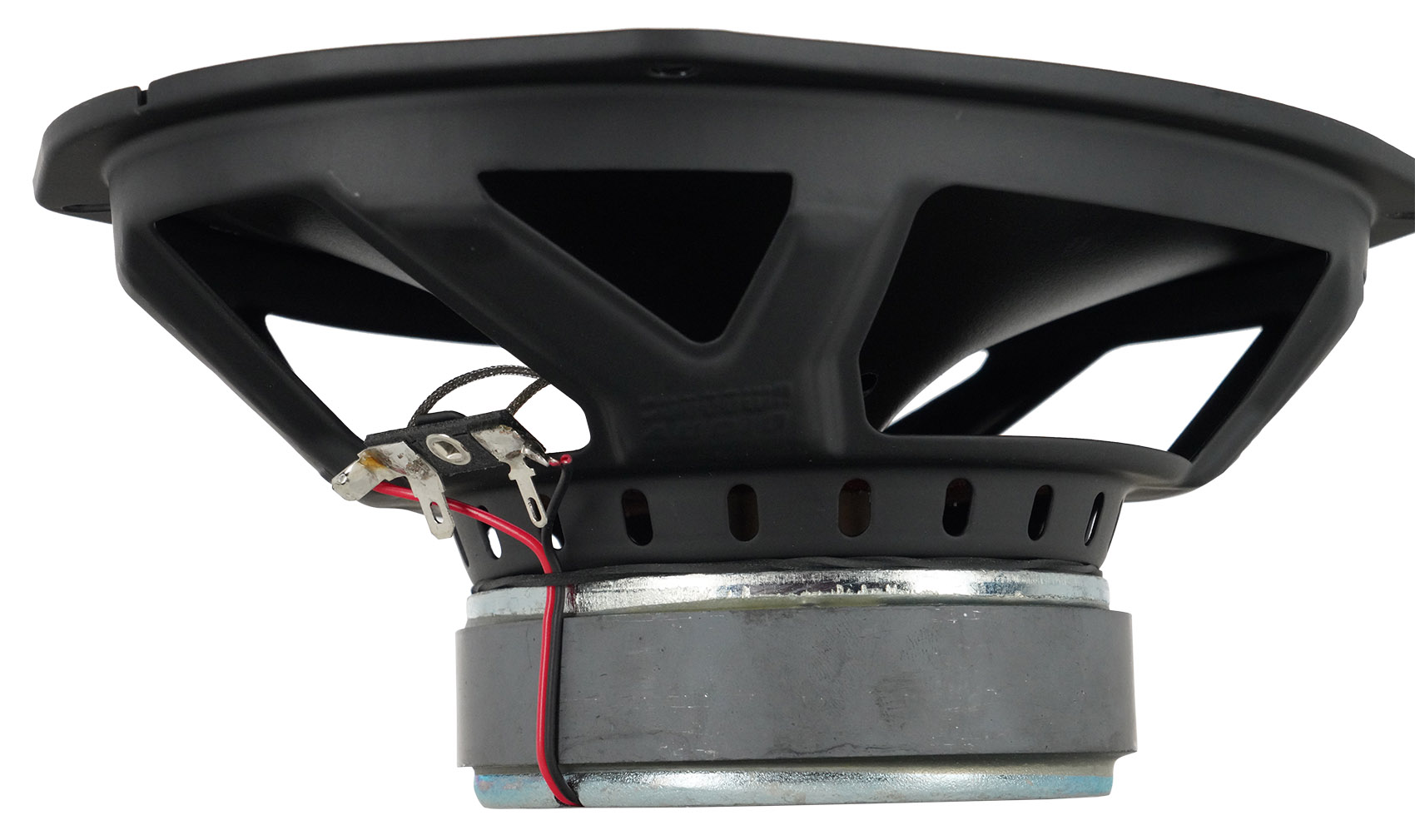 Using a titanium tweeter and tough polypropylene cone, the E-Series drivers use a damped titanium tweeter for smooth response, without the harshness of most metal drivers. An ultra smooth sounding polypropylene cone is mated to the cone with a rubber surround, helping to provide extremely linear excursion. A rubber sealing ring was added to the tweeter stalk, preventing dust and moisture from interfering with motor movement. The steel frame is custom tooled and vented for outstanding thermal control, so you can play it long and play it loud!