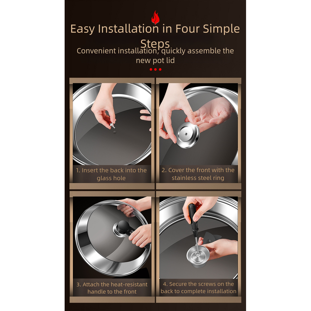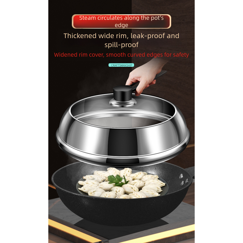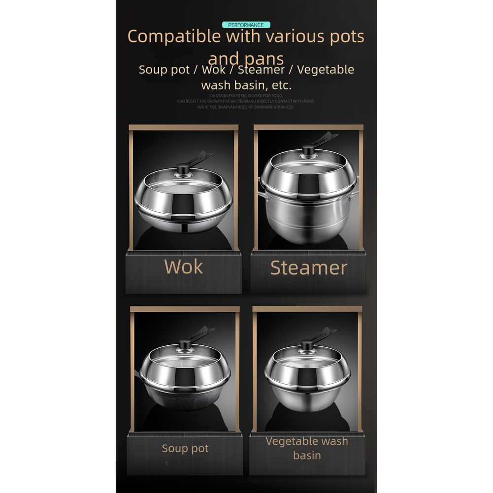 Stainless Steel Pot Lid Compatible with Various Pots and Tempered Glass