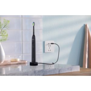 Die elektrische Sonicare Zahnbürste mit fortschrittlicher Schalltechnologie entfernt sanft Verfärbungen für natürlich weißere Zähne mit jedem Putzen.