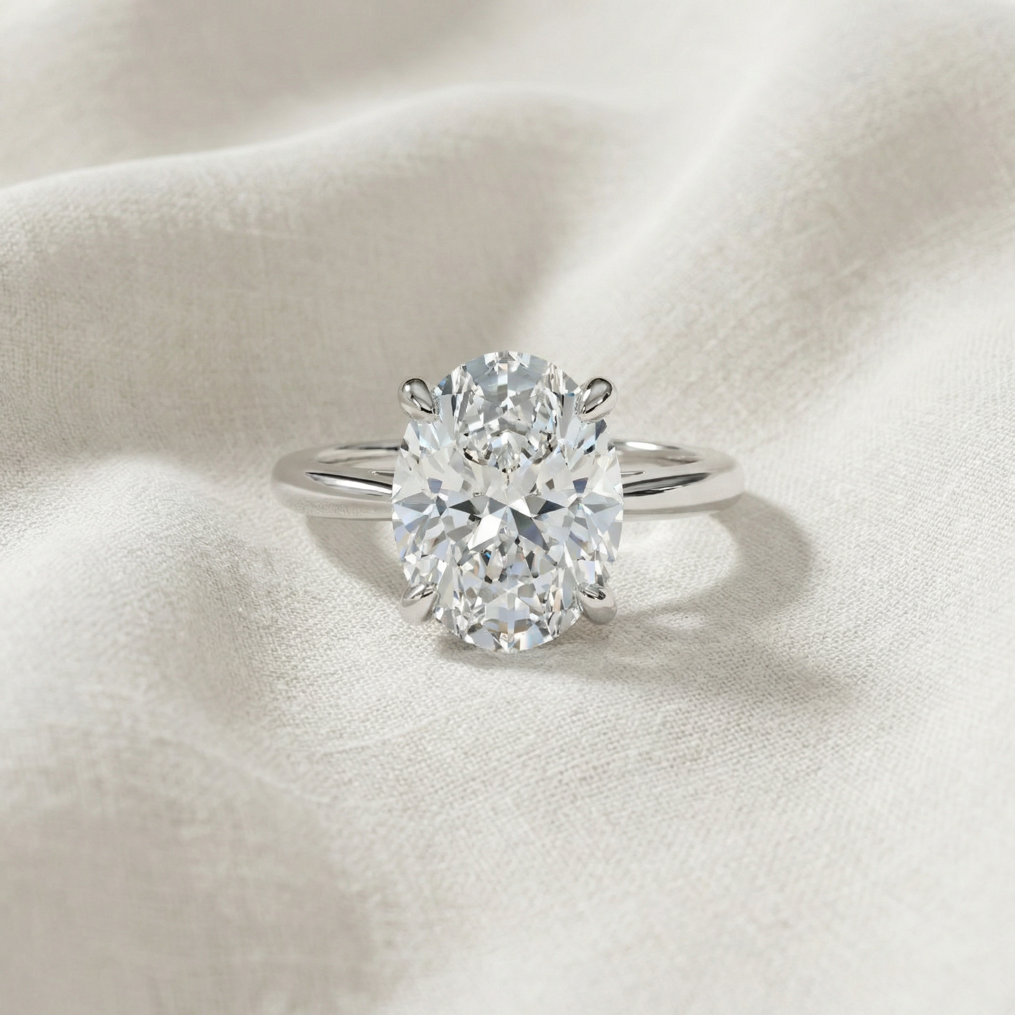 The Ashley ring highlights a brilliant certified 2 ct lab-grown oval diamond in a sleek 14K gold solitaire design—perfect for a love that lasts.