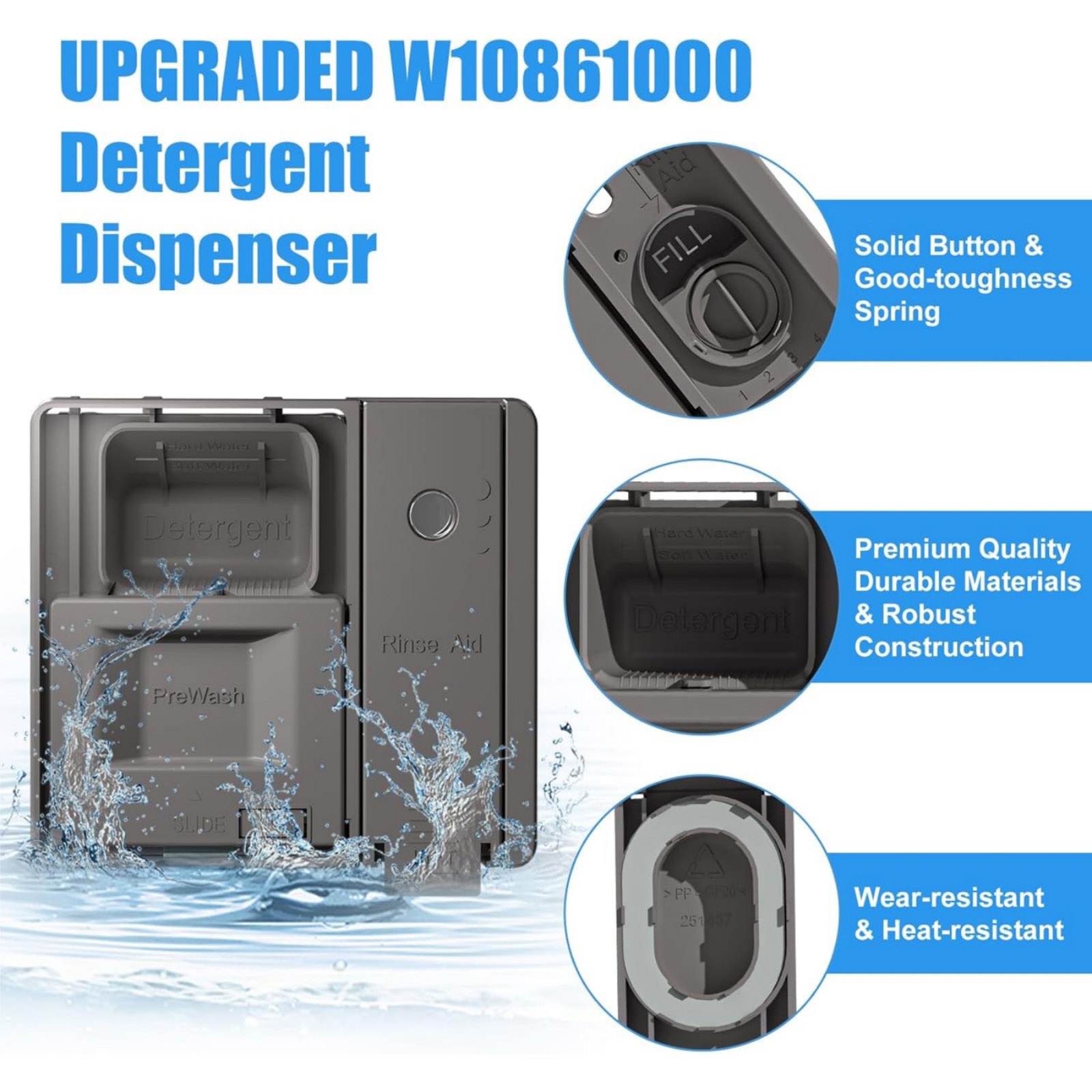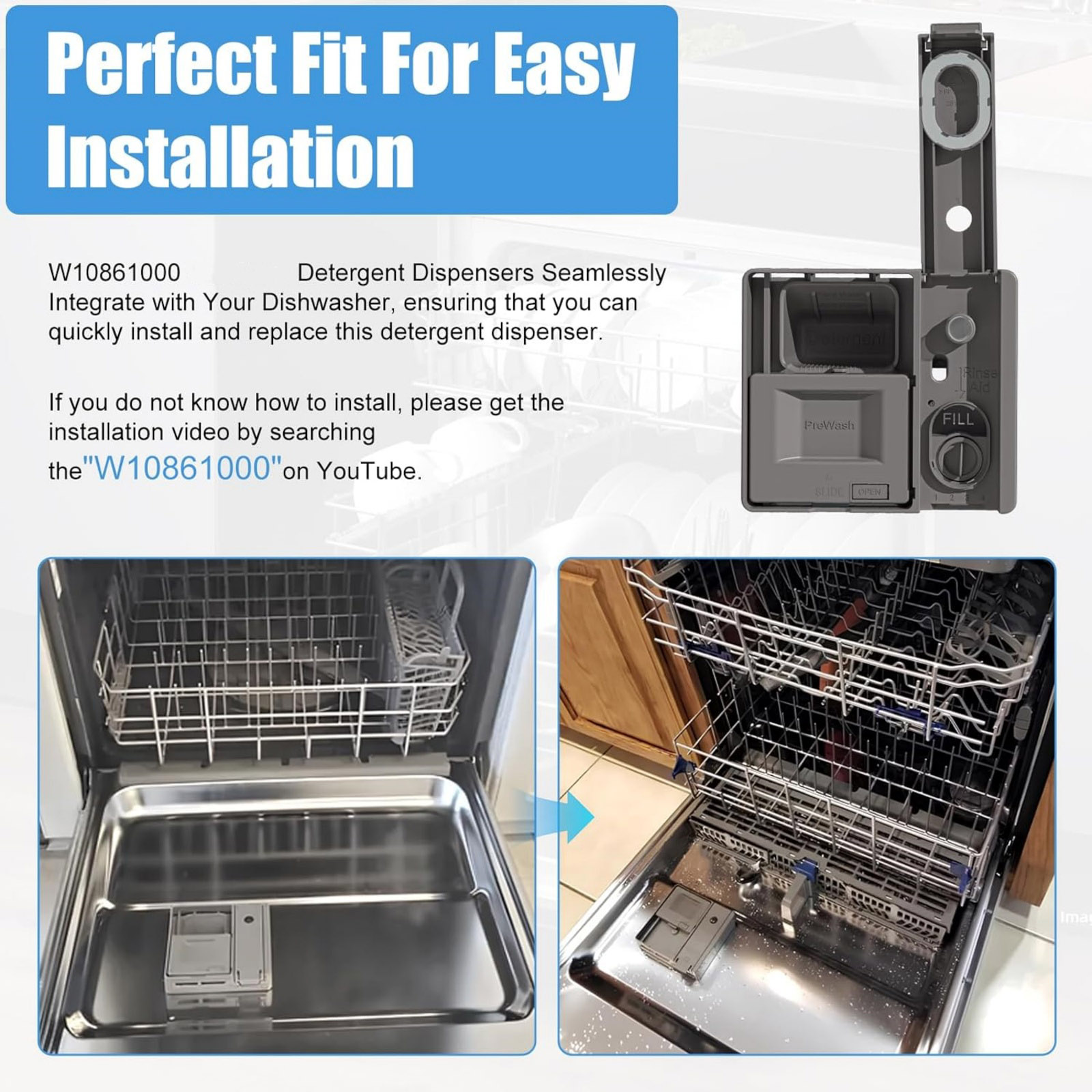 Durable W10861000 Dishwasher Detergent Dispenser For Whirlpool WDT730PAHZ0