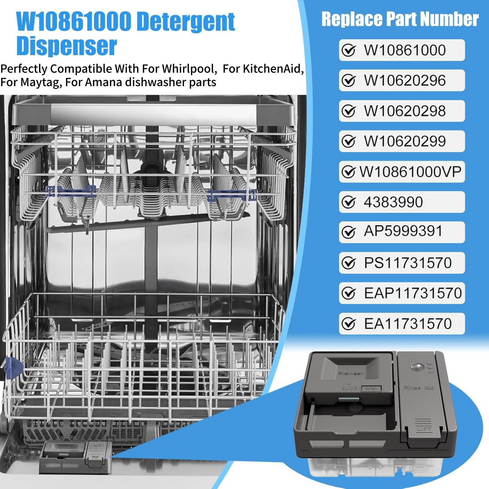 For Whirlpool: WDT730PAHZ0, WDT730PAHB0, WDT730PAHW0, WDT730PAHV0, WDT970SAHZ0, WDT970SAHV0, WDT970SAHB0, WDT970SAHW0, WDT750SAHZ0, WDTA50SAHZ0, WDT730HAMZ0