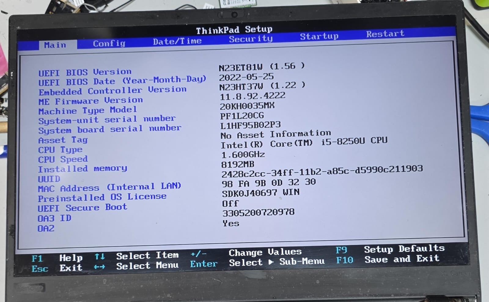 Lenovo ThinkPad X1 Carbon 6th Mainboard Intel i5-8250U 8GB RAM 01YR208 01YR214 Cmos NM-B48