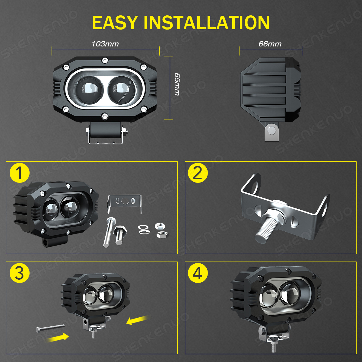 【HEAT DISSIPATION】- LED dirving fog light adopt Lower Power Consumption technical. All in aluminum profile and thick enough heat sinks housing, helps it speed up the heat dissipation and makes it durable and long lasting. Effectively prolong lifespan of the led work light more than 50,000 hours.