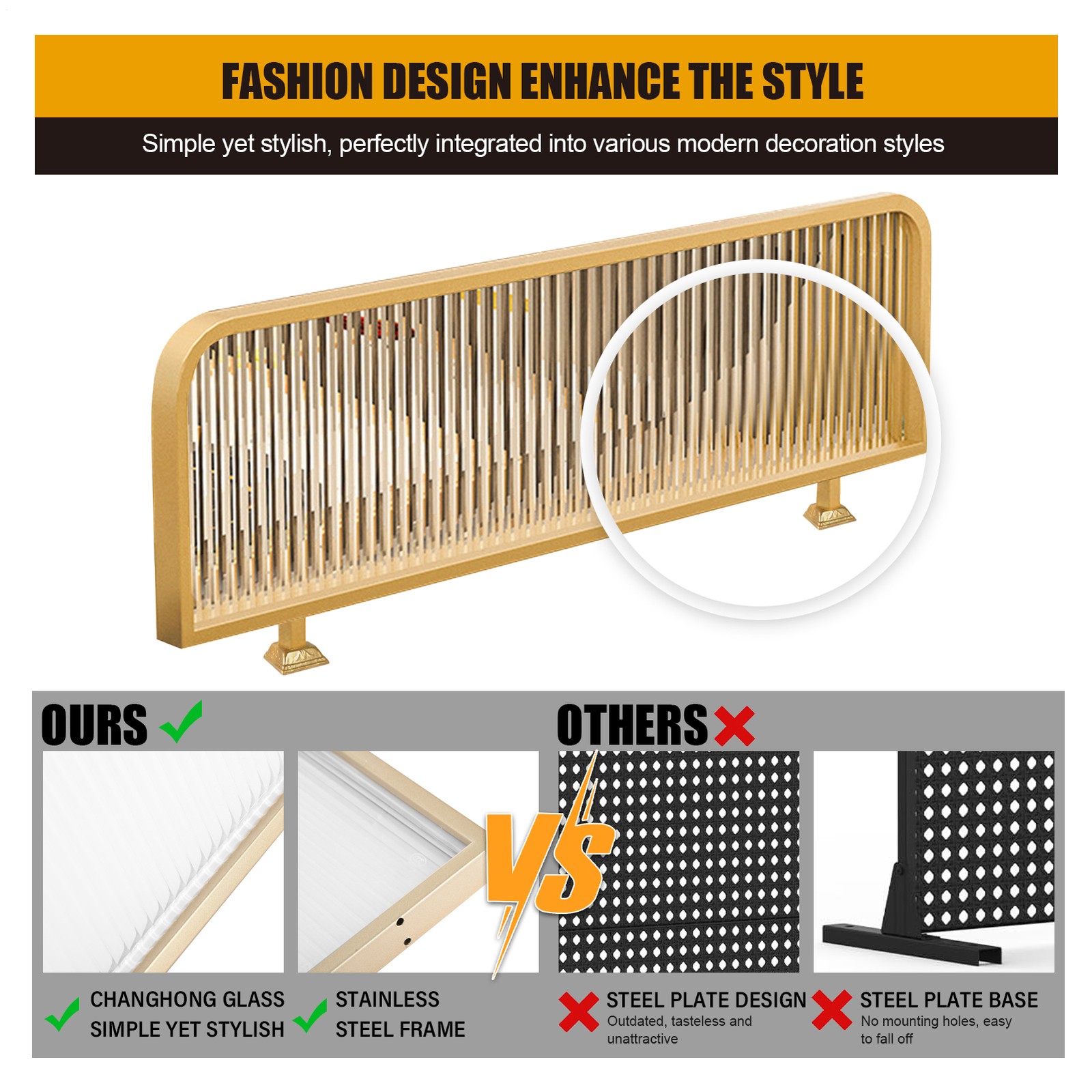 Sturdy and Stable: The screen divider's sturdy stainless steel frame and thickened tempered glass provide a safe and stable partition support. This promotes durability and safety, keeping you worry-free during use