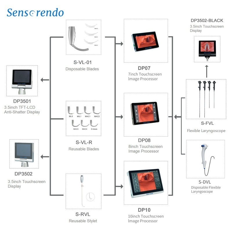 Sensorendo S-VL-01 Video laryngoscope with disposable blades are ISO13485 certificed, CE/FDA approved, we could send product to most parts of world with door to door delivery service.