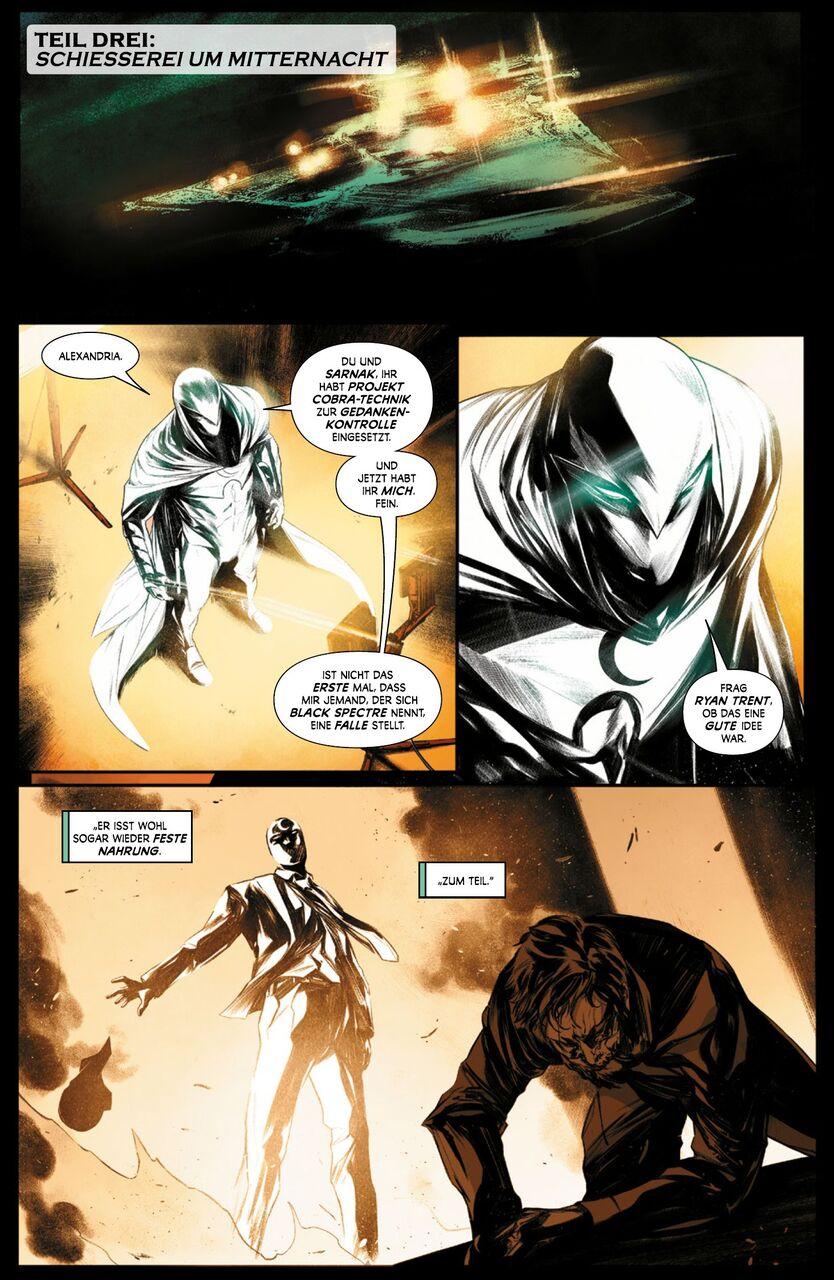 DAS ENDE VON MOON KNIGHT Eine neue Inkarnation des tödlichen Schurken Black Spectre sucht Moon Knight und seine Gefährten Hunter's Moon und Tigra heim! Um den Mondritter zu vernichten, fährt Black Spectre viele Feinde und Waffen auf - muss Khonshus knallharter Kämpfer seinem Ende ins Auge blicken Zudem erfahren wir alles über die Karnak Cowboys um Marc Spector und Layla El-Faouly, die vor Jahren auf geheimer Mission in Ägypten waren. Ein weiterer Kracher von Marvels Top-Autor Jed MacKay (Doctor Strange, Avengers), Alessandro Cappuccio (Mighty Morphin Power Rangers), Federico Sabbatini (SPIDER-MAN) und anderen.ENTHÄLT: MOON KNIGHT (2021) 25-30