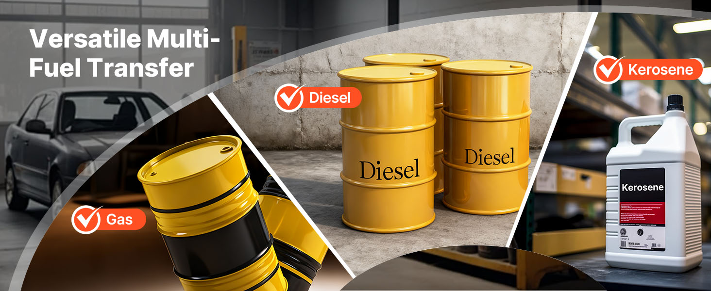 - Pompe à carburant polyvalente : Conçue pour une utilisation polyvalente, cette pompe de transfert de carburant électrique est compatible avec l’essence, le diesel et le kérosène. Idéale pour le ravitaillement des tracteurs, générateurs, camions et engins de chantier dans diverses situations