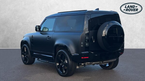 A superb 26 Model Year Defender 90 presented in a great specification,offering a capable drive, ready for your next adventure. Our Defender 90 X-Dynamic SE Matt Edition is finished in Santorini Black with Full-body Matt Paint Protection Film, matched with the Extended Black Exterior Pack and 22-inch Style 5098 wheels in Gloss Black, over Ebony Resist interior, and comes equipped with some fantastic features and optional extras, including, 12-way Heated front seats with Memory function, Two-zone Climate Control, Meridian Sound System, Privacy Glass, LED Headlights, Keyless Entry, Adaptive Cruise Control, Lane Keep Assist, Blind Spot Assist, 360-degree Parking Aids, 3D Surround Camera, Apple CarPlay and Android Auto, DAB Radio, Wireless Device Charging, Air Suspension Pack, Cold Climate Pack, Fixed Side Steps, Spare Wheel Cover, and much more. Call today for more information. PRICE INCLUDES 4,000 GBP DEPOSIT CONTRIBUTION WHEN FUNDED WITH JLR FS. - EVENT ONLY OFFER.