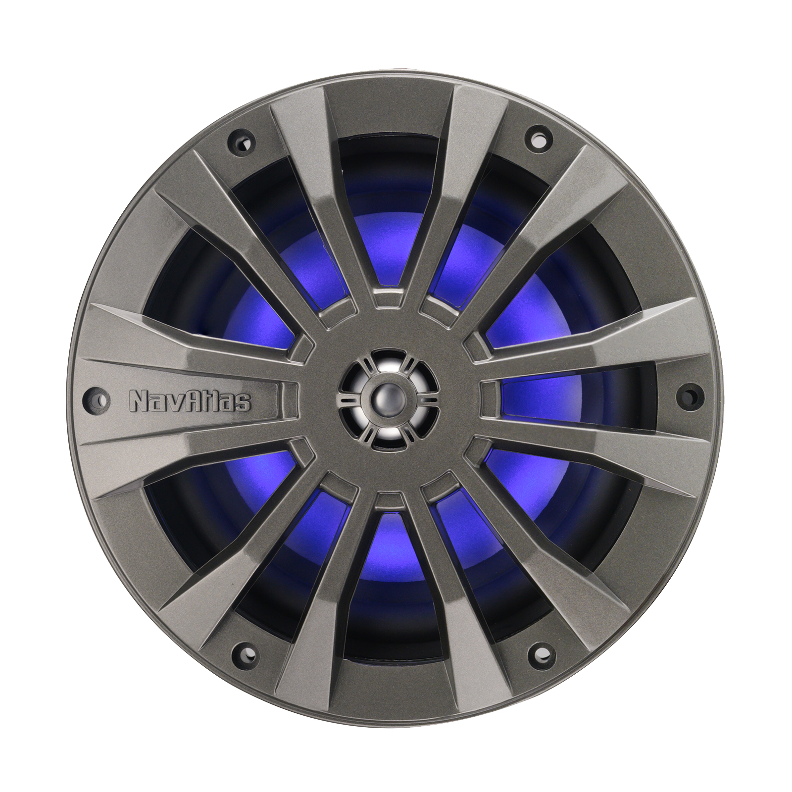 These NavAtlas 6.5" marine speakers are designed specifically with durable materials for reliable service in open-environment applications! These speakers pump out 200 Watts RMS per speaker so you'll be sure to get the powerful sound you've been looking for. Equipped with Blue LED lighting for an added visual flair.