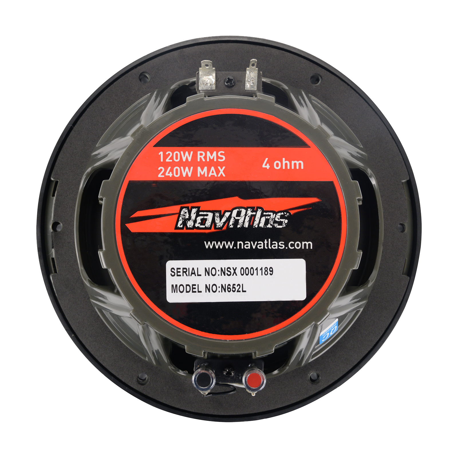 NavAtlas N652L 6.5” 2-Way Waterproof 200W RMS Power Full-Range Speakers with Built-In Blue LED Lighting (Pair)