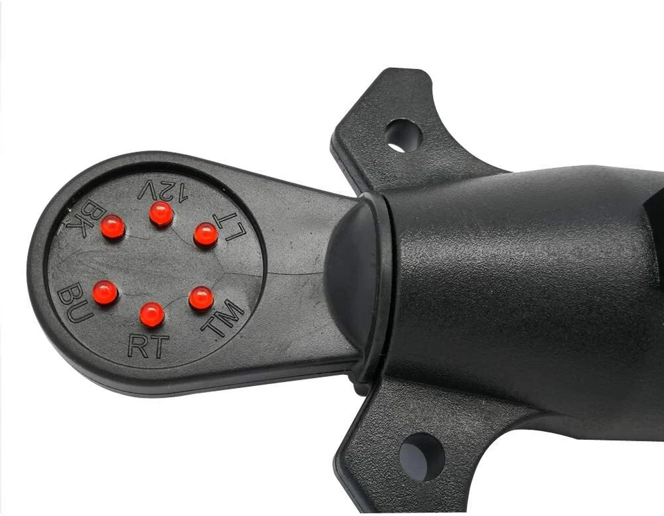 Directly plugging it into a connector socket on your vehicle, it'll respond to the various electrical signals when you push the brake pedal, signals a turn, turn on the running lights, etc. When the socket is getting proper power, the tester's LEDs will light up corresponding to each wire in the connector. Testing your vehicle-side socket is essential after installing a new custom vehicle-to-trailer wiring harness and is highly recommended every time you hitch up to tow.