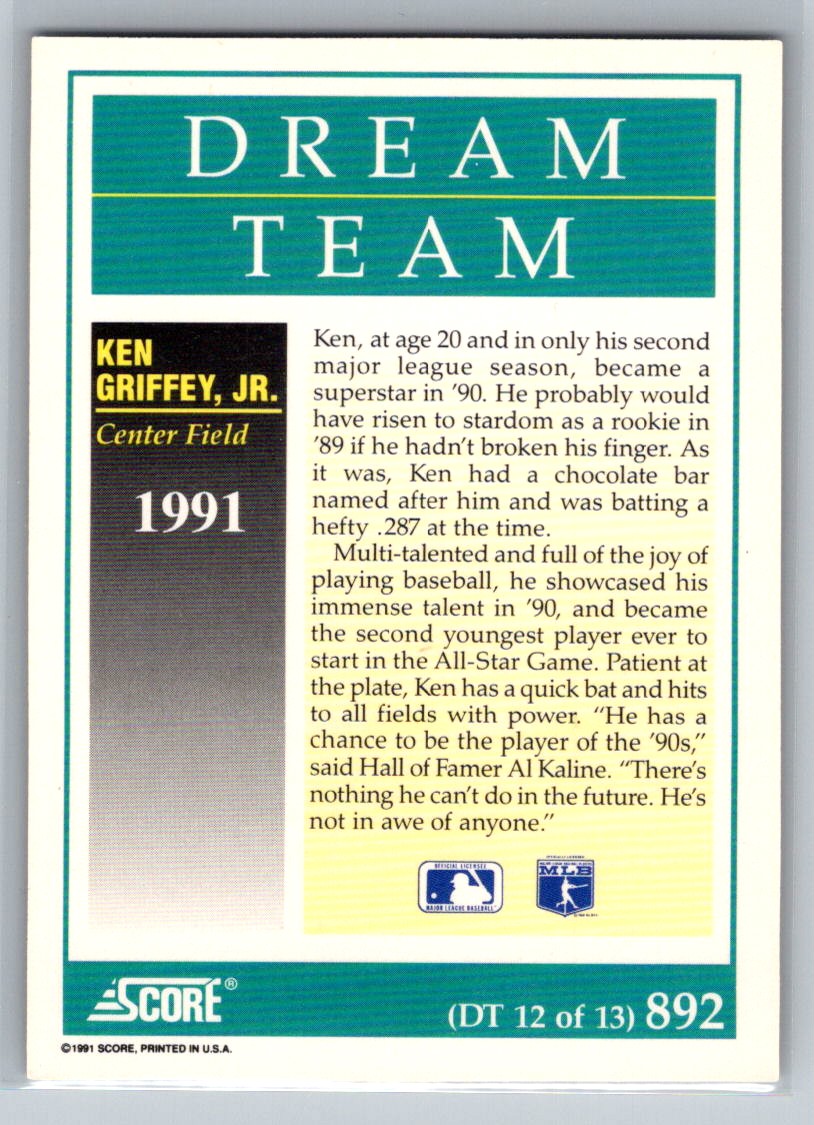 | 1991 Score Dream Team Ken Griffey Jr. Seattle Mariners #12 |
