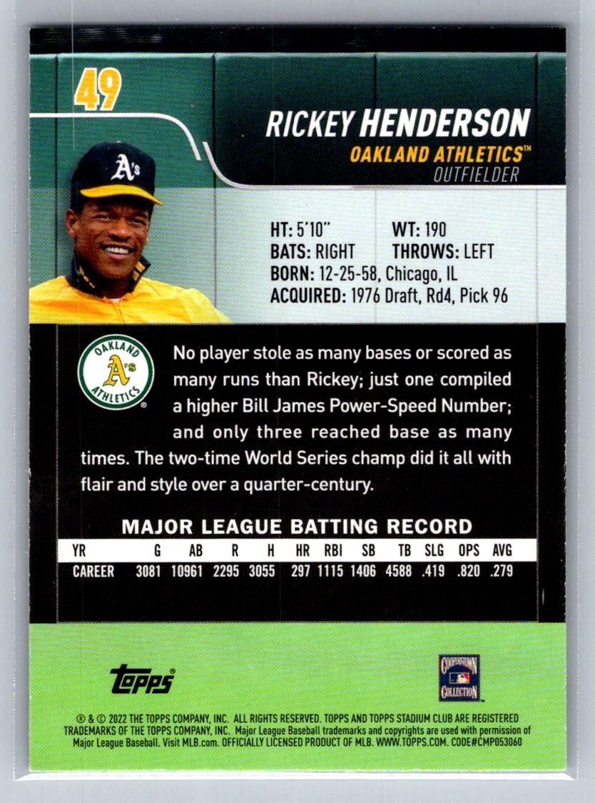 | 2022 Stadium Club Rickey Henderson Oakland Athletics #49 |