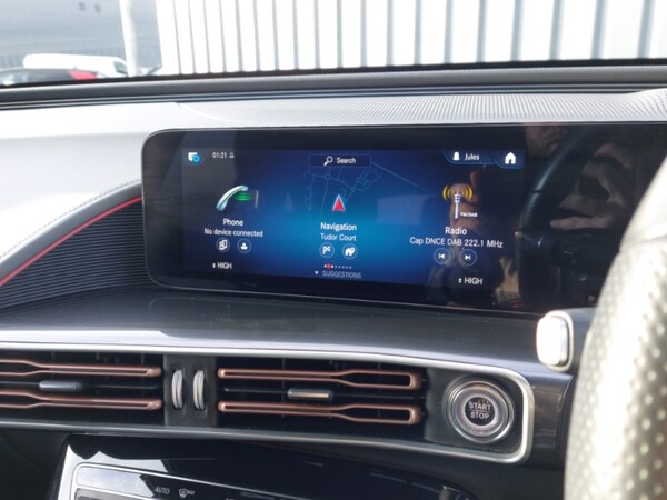 Acoustic ambient protection, Active lane departure warning system, DYNAMIC SELECT with a choice of driving modes (max range, ECO, comfort and sport), EQ navigation services - map (range display), display charging stations, programming of charging settings and pre entry climate control, Hard-disk navigation, Mercedes Benz emergency call system, Mercedes me connect, Charging cable for wall box and public charging station - 4m - Type 2 (mode 3), 11KW onboard charger, 4MATIC all wheel drive, MBUX multimedia system with 10.25"" instrument and 10.25"" media display with touchscreen, Mercedes Benz sound system with 4 mid range speakers, 2 tweeters, 2 Frontbass speakers, 1 centre speaker and 225 W amplifier output, AMG specific black panel radiator grille with twin blade design and high gloss black surround, AMG specific front apron with jet wing design, visible air intakes with chrome trim parts and high gloss black inserts and air curtains, AMG specific rear apron with visible air outlets, black diffuser insert and chrome trim elements, Badge on the wing in high gloss black with chrome stripes and blue EQC lettering, Air balance package - EQC, Keyless go comfort package - EQC, 6 airbags - Driver, front passenger, curtain and side airbags, Active brake assist, Urban guard vehicle protection, Black open pore ash wood trim with high gloss centre console, Summer tyres, 21"" AMG multi spoke alloy wheels in black