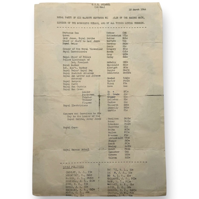 USN 1944 USS Stembel, Roster of Fraternal Neptunus Rex, Ruler of the Raging Main