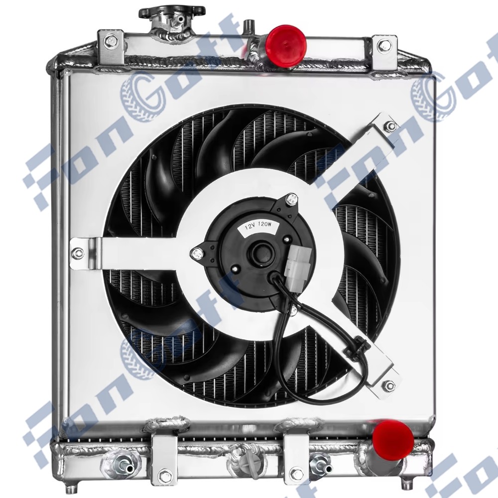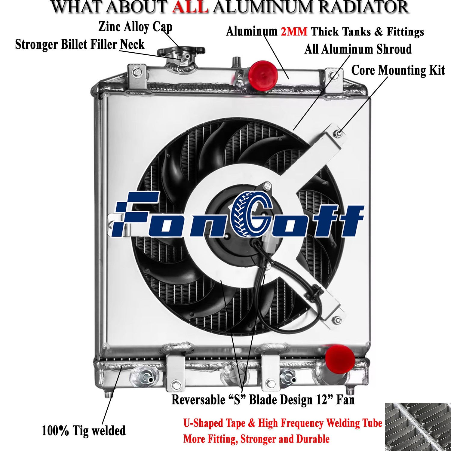 This aluminum radiator is designed to provide maximum cooling efficiency to prevent premature engine failure. Its light-weight, and high-heat transferring aluminum features a tube and fin design that, dramatically increases surface area that enables the heat to dissipate more efficiently. This Aluminum Radiator is at least 40% more efficient than stock ones. Most importantly, it has a much higher capacity for coolant than stock ones, which means that your cooling system will be more efficient and will be more resistant to temperature surges in racing applications.