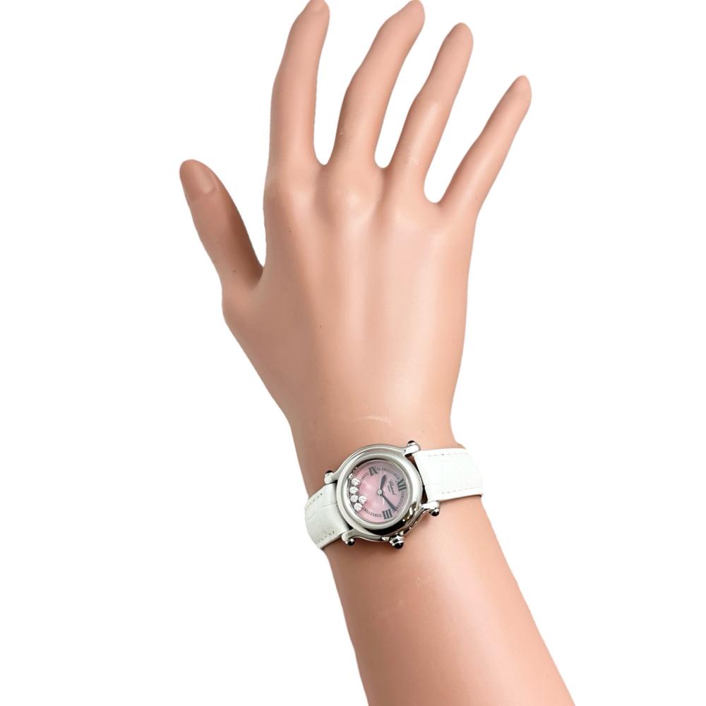 | Color | Pink shell dial/white leather strap (not original) |