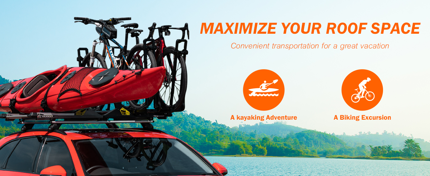 Introducing our premium lift roof rack, the perfect solution for outdoor enthusiasts seeking a secure and convenient transportation method for their kayaks and bikes. This versatile lift carrier offers an innovative design that allows you to transport both kayaks and bikes without any hassle.