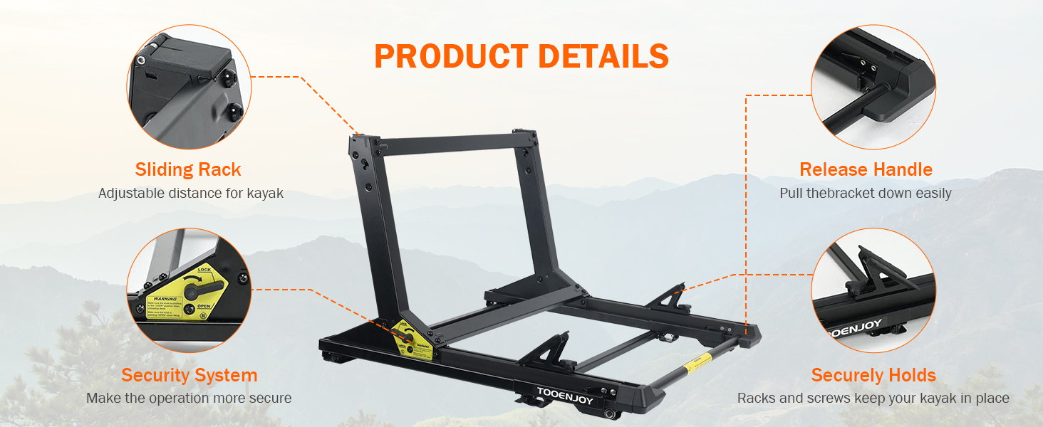 - Space-Saving and Versatile: Maximize your roof space and expand your possibilities with our versatile and efficient roof rack system. Tooenjoy designed to save space and accommodate various gear, from kayaks to camping equipment. You can even install up to two lift racks on your roof for added storage capacity. Experience the convenience of our adjustable and multi-purpose roof rack, unlocking endless adventure opportunities for your outdoor pursuits.
