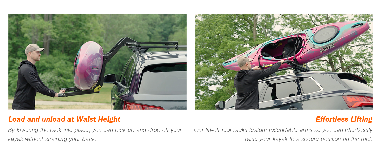 - Easy Lift - Effortlessly load and unload your kayak at waist height. Our innovative design with air spring tension allows for easy lifting, eliminating the need for heavy lifting and making your kayak transportation a breeze.