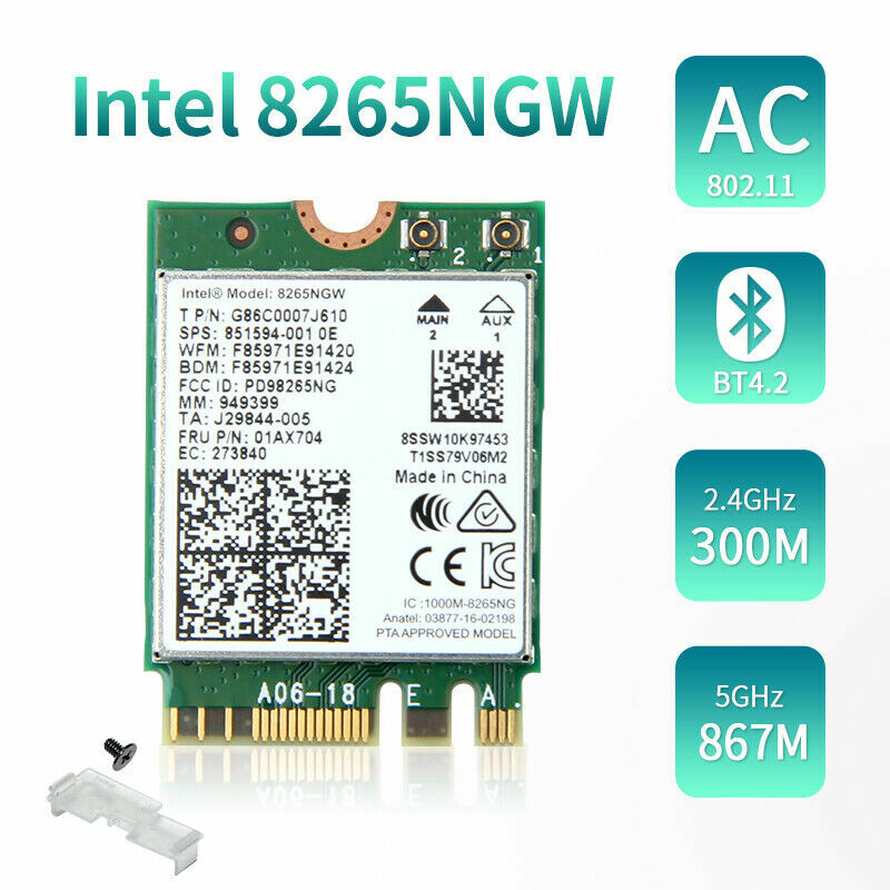 - 1 * Intel Dual Band Wireless-AC 8265 adapter (No CD driver inside package,please try to download driver from that link: https://downloadcenter.intel.com/product/94150/Intel-Dual-Band-Wireless-AC-8265)