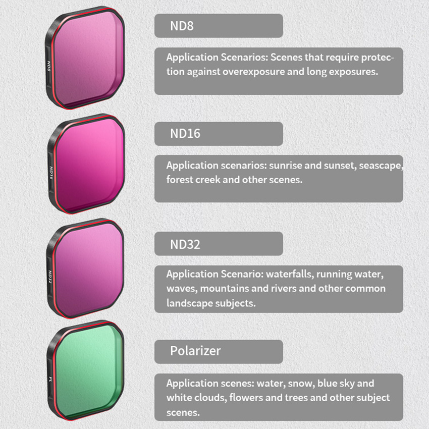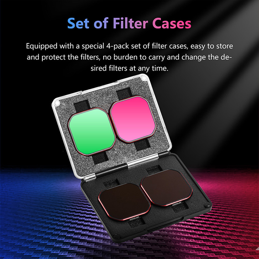 l Equipped with a special 4-piece filter case, easy to store and protect the filters, no burden to carry and change the filters you want at any time