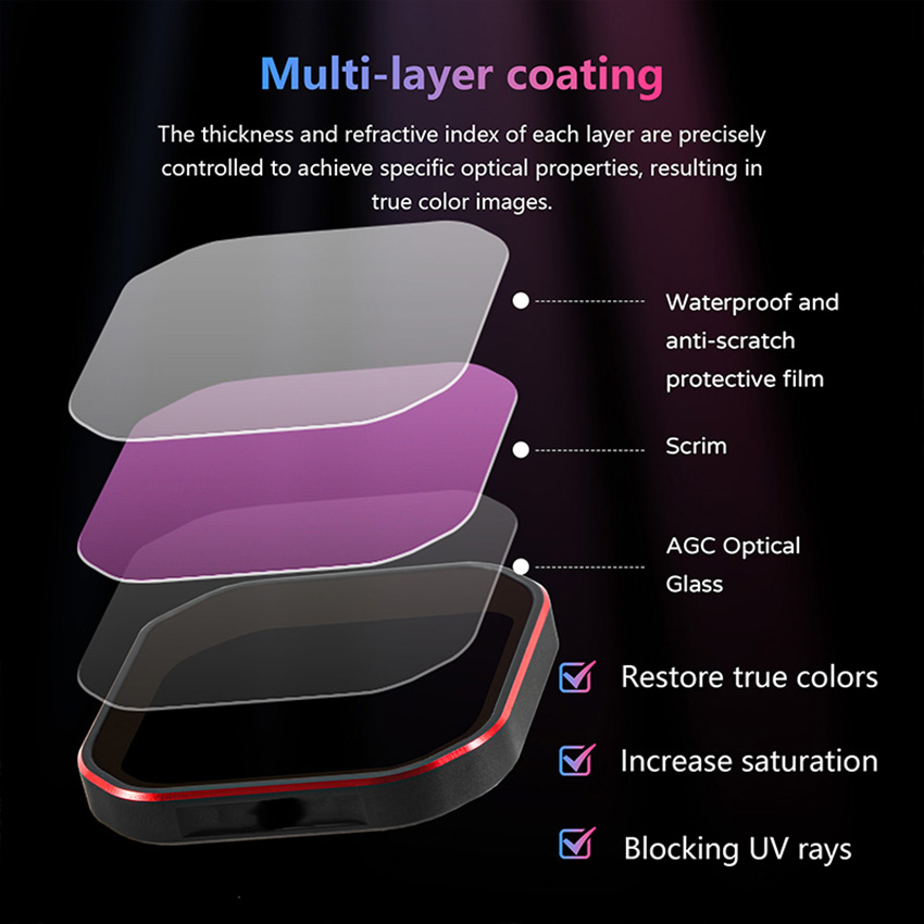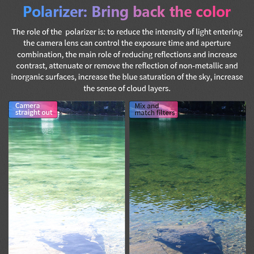l Each filter is made of high-definition optical glass, which has no effect on image quality, and has been ground and polished many times to create a low refractive index, ensuring the true color reproduction of the image