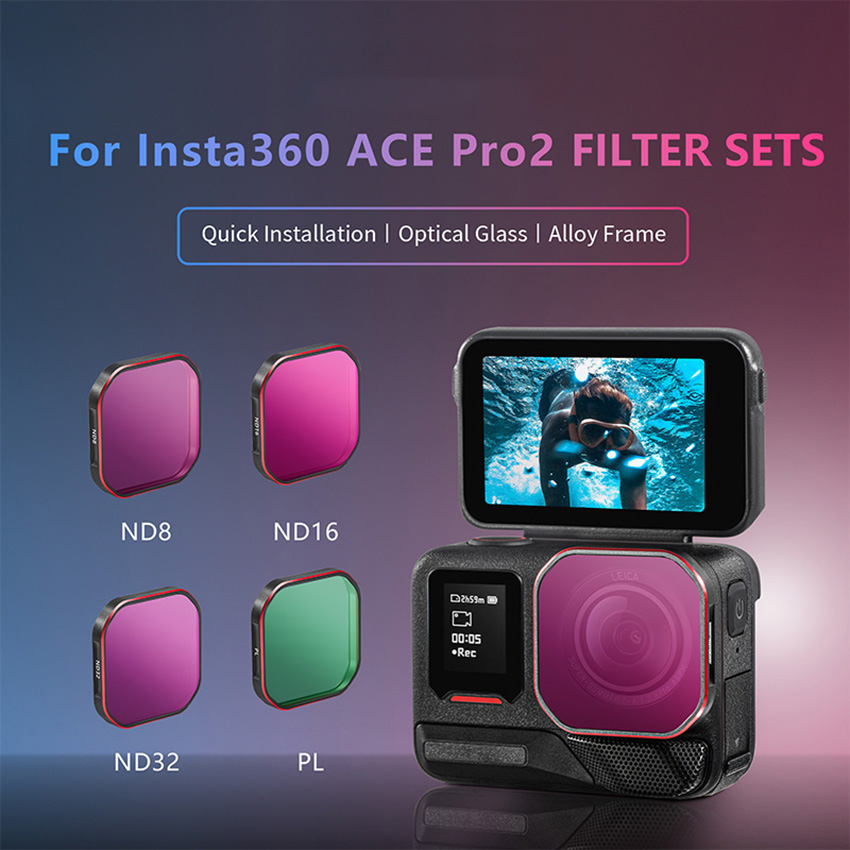 l Perfectly adapted to Insta360 ACE/ACE PRO set of filters, multi-layer coating, waterproof, scratch-proof, dust-proof, oil-proof, protect your lens from all-round damage. You can choose from a variety of filter effects when shooting, including ND/8/16/32 and PL lenses