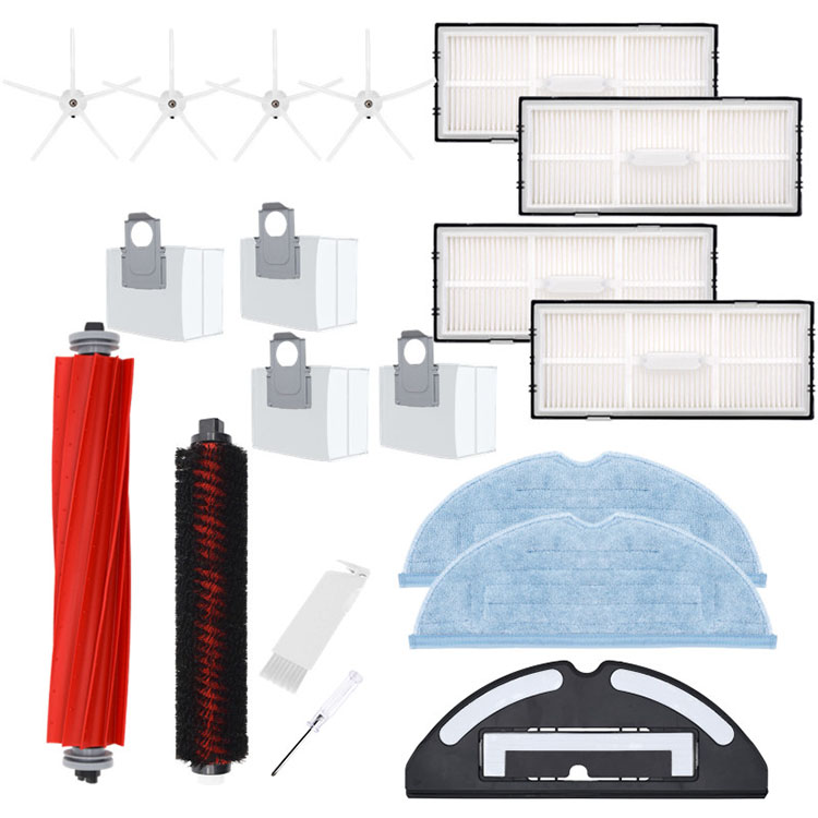 l 1xMain Brush 1xSelf-Cleaning Main Brush 4xSoft 5-Claw (White) 4xFilter 2xMop Cloth Thin 1xVibrating Mop Holder 4xDust Bag 1xWhite Bristle Cutter 1xScrewdriver(#9)