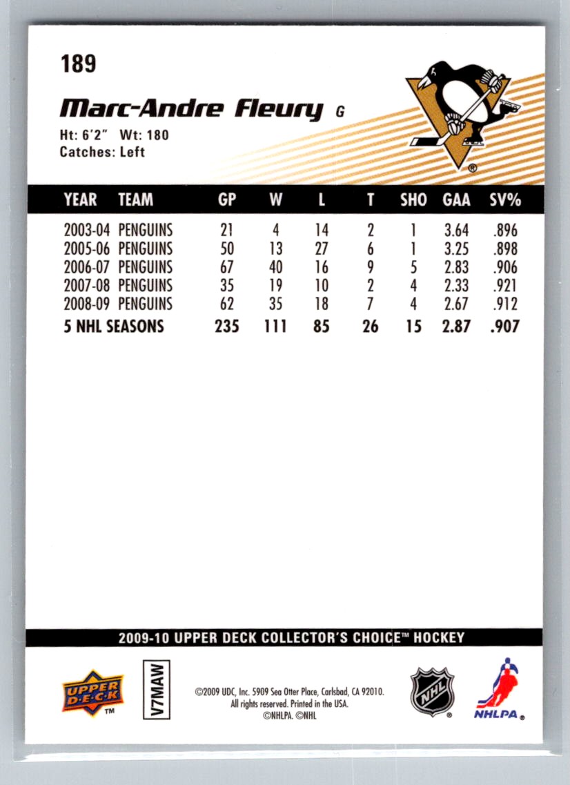 | 2009-10 Collector's Choice Marc-Andre Fleury Pittsburgh Penguins #189 |
