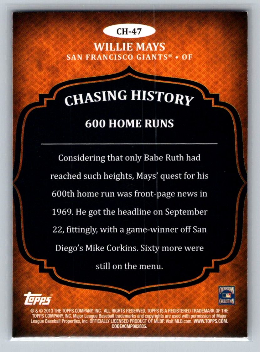 | 2013 Topps Chasing History Willie Mays San Francisco Giants #CH-47 |