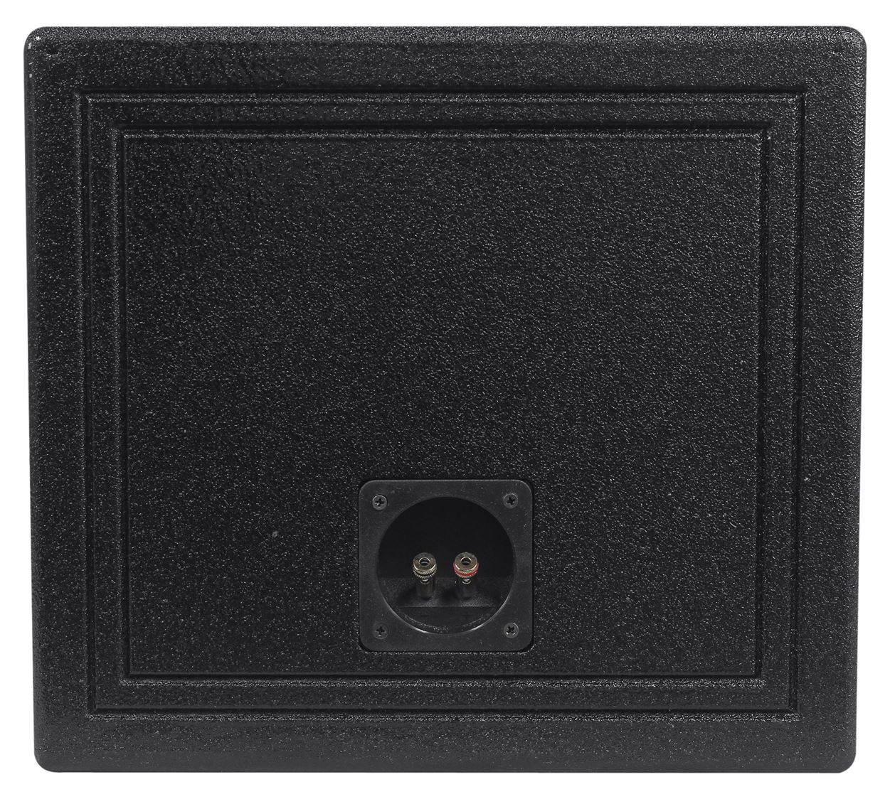 The RQB12 Qbomb single 12" vented enclosure is an incredibly well-built and durable sub enclosure. This box is finished with a bedliner spray which hardens to make this box weather resistant as well as making it almost impossible to break. The bedliner finish is the same material that the back of a pickup truck is made of.