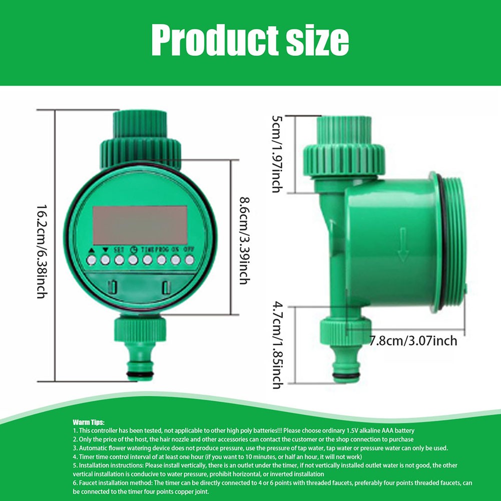 * Solution d'arrosage facile : transformez votre robinet de tuyau en un système d'irrigation intelligent avec notre minuterie de tuyau, conçue pour la simplicité et flexibilité. Parfait pour pelouses, cours, piscines, jardins, serres et plus pour encore, cette minuterie d'arrosage garantit chaque plante reçoit la bonne quantité d'eau, vous permettant d'économiser du temps, de l'argent et des ressources en eau.