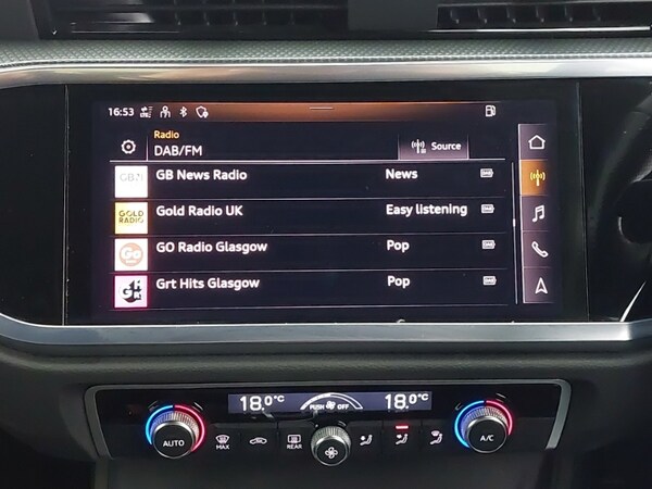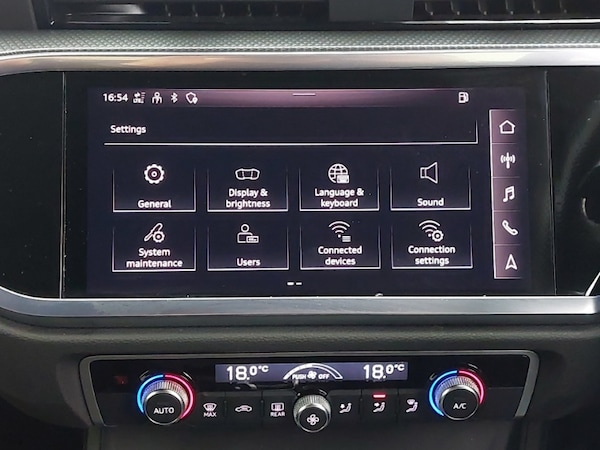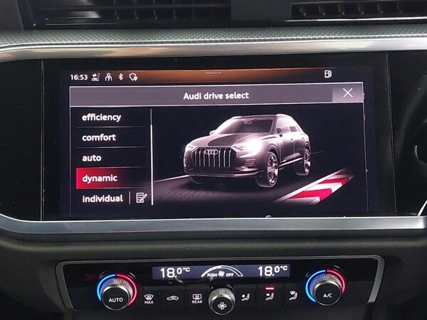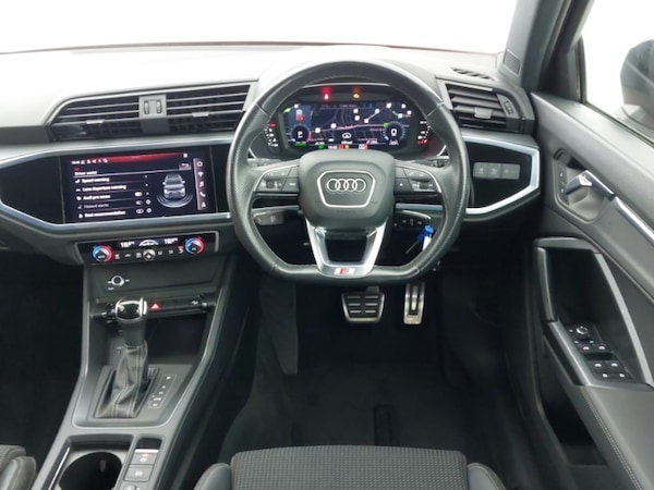 Audi Virtual Cockpit - 10.25"" display, MMI Navigation Plus with high resolution 10.1 inch touchscreen colour display, LED headlights with LED daytime running lights and dynamic rear indicator, Dual zone electronic climate control, Black styling pack - Q3, Smartphone interface includes wireless Apple carplay/Android Auto, Camera based traffic sign recognition, 48V Mild hybrid technology, DAB digital radio module, Rain and light sensors, S line bumpers in contrasting Manhattan grey, Black cloth headlining