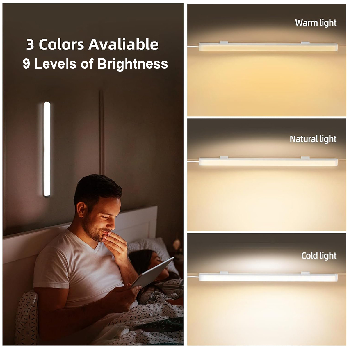 - Three light colors switch(warm lightt+natural light+white light switch), 9 levels Dimming , it can meet the needs of different scenes.