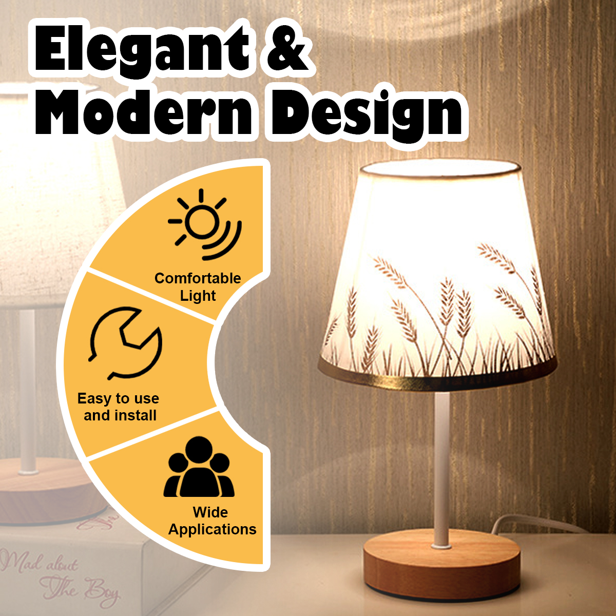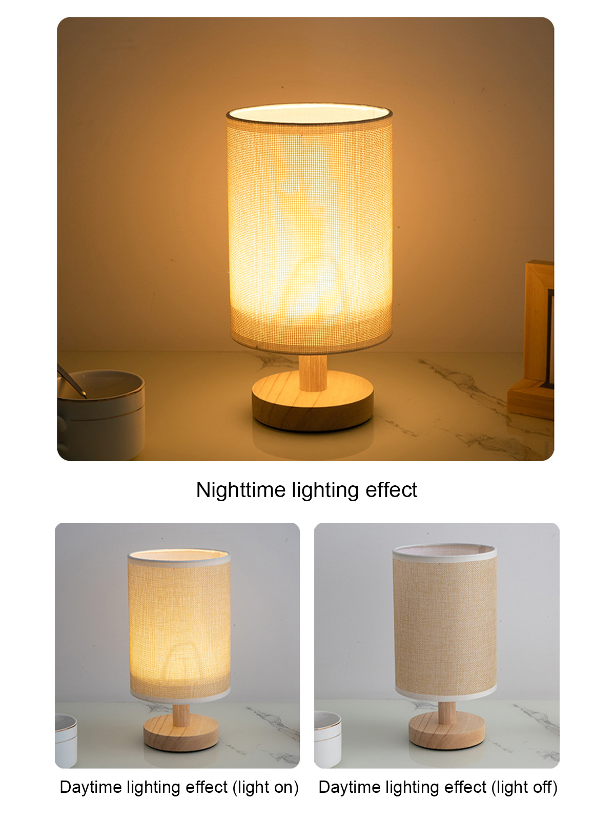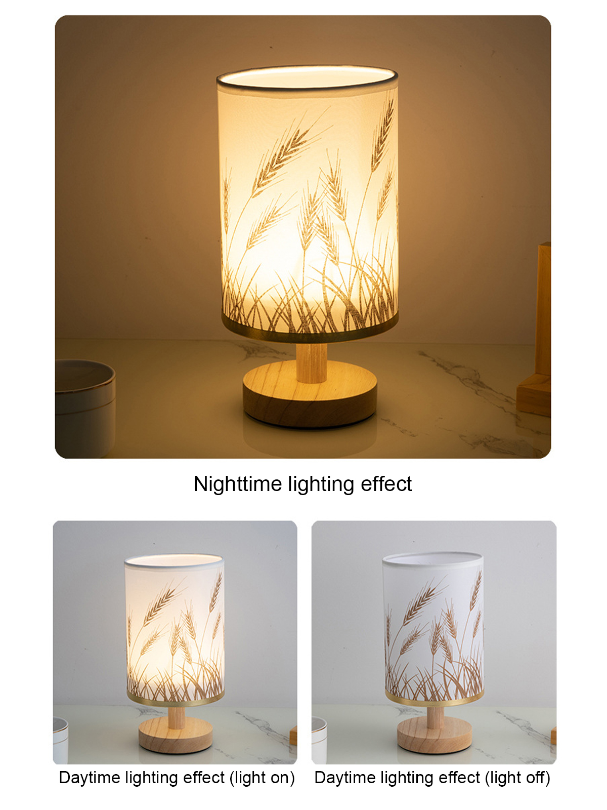 - This bedside lamp is the minimalist style design, high class solid wood base with fabric shade .