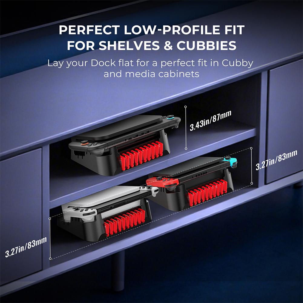 Lay your Dock flat for a perfect fit in Cubbyand media cabinets