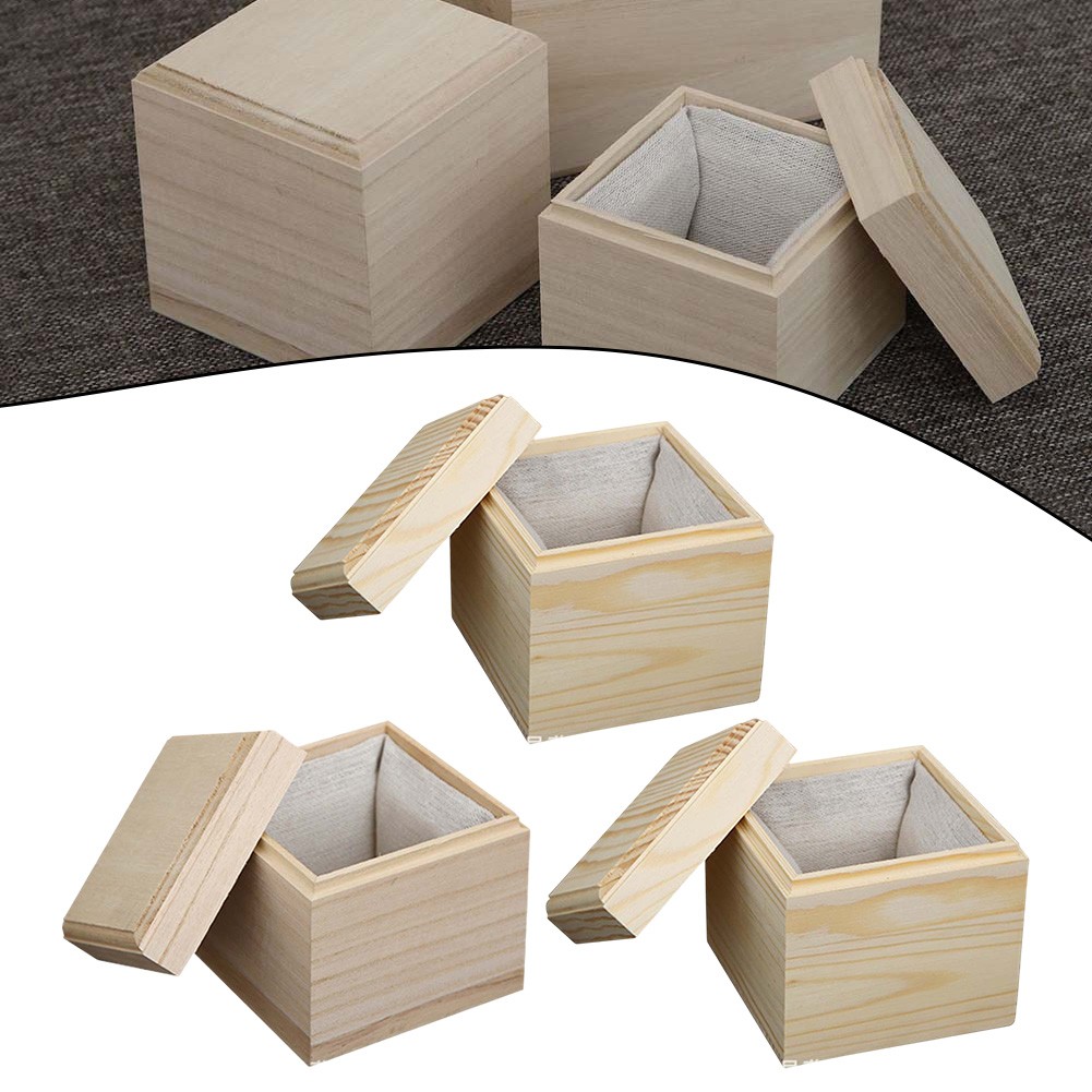 Boîte de rangement en bois de pin clair avec doublure intérieure pour artisana