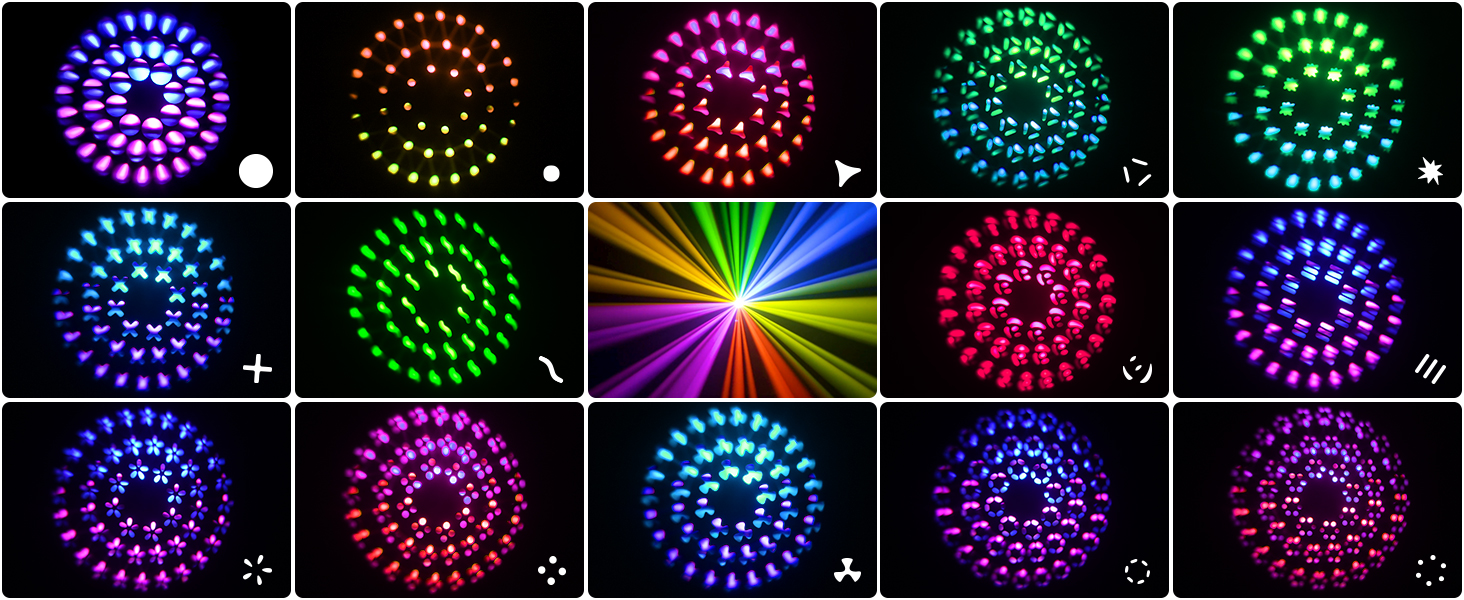 2. [Spezielle optische Effekte]: Ausgestattet mit 48 Prims für einen dynamischen Wabenprismeneffekt und Nebeleffekt, der einen Regenbogeneffekt erzeugen kann. Die Prismen können in jedem Winkel positioniert und gedreht werden, um eine präzise elektronische Fokussierung zu erreichen und den visuellen Effekt zu verbessern.