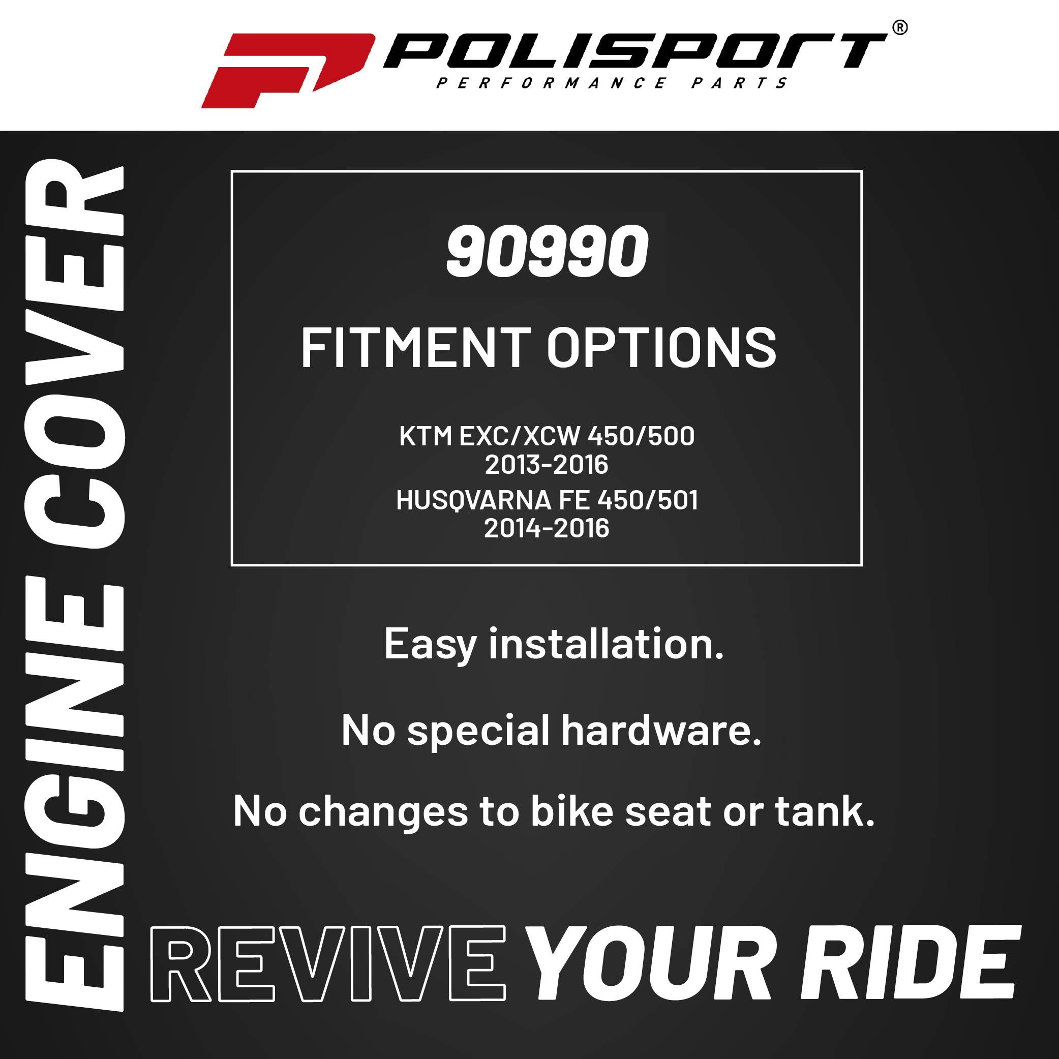 Polisport Motocross Motorcycles (MX) Engine Covers Protector Kit for Husqvarna FE 450/501 (2014-2016) & KTM EXC/XCW 450/500 (2013-2016) Dirt Bikes - Durable PA6 Plastic Protection - BlueSKU: 90990