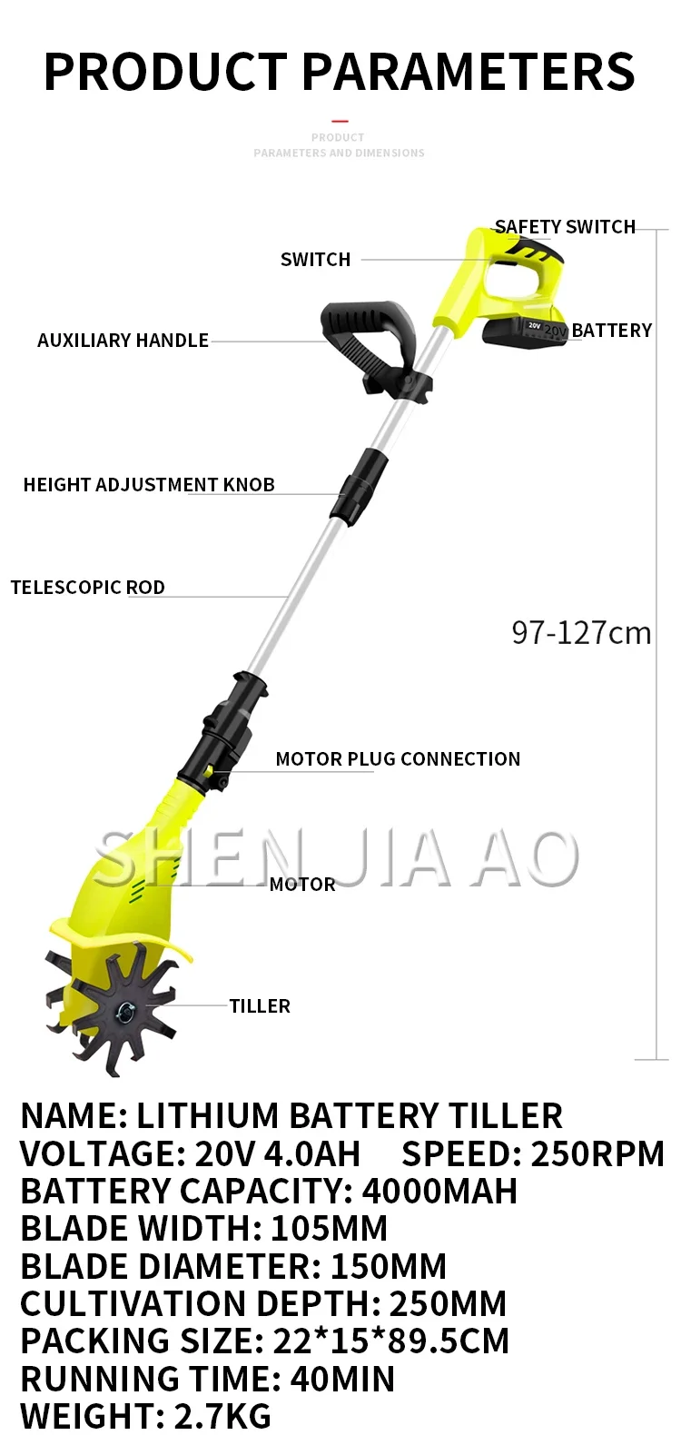 20V 4.0AH Electric ripper, lithium electric cultivator, tiller, small weeder, grounding machine, excavator, rotary tiller