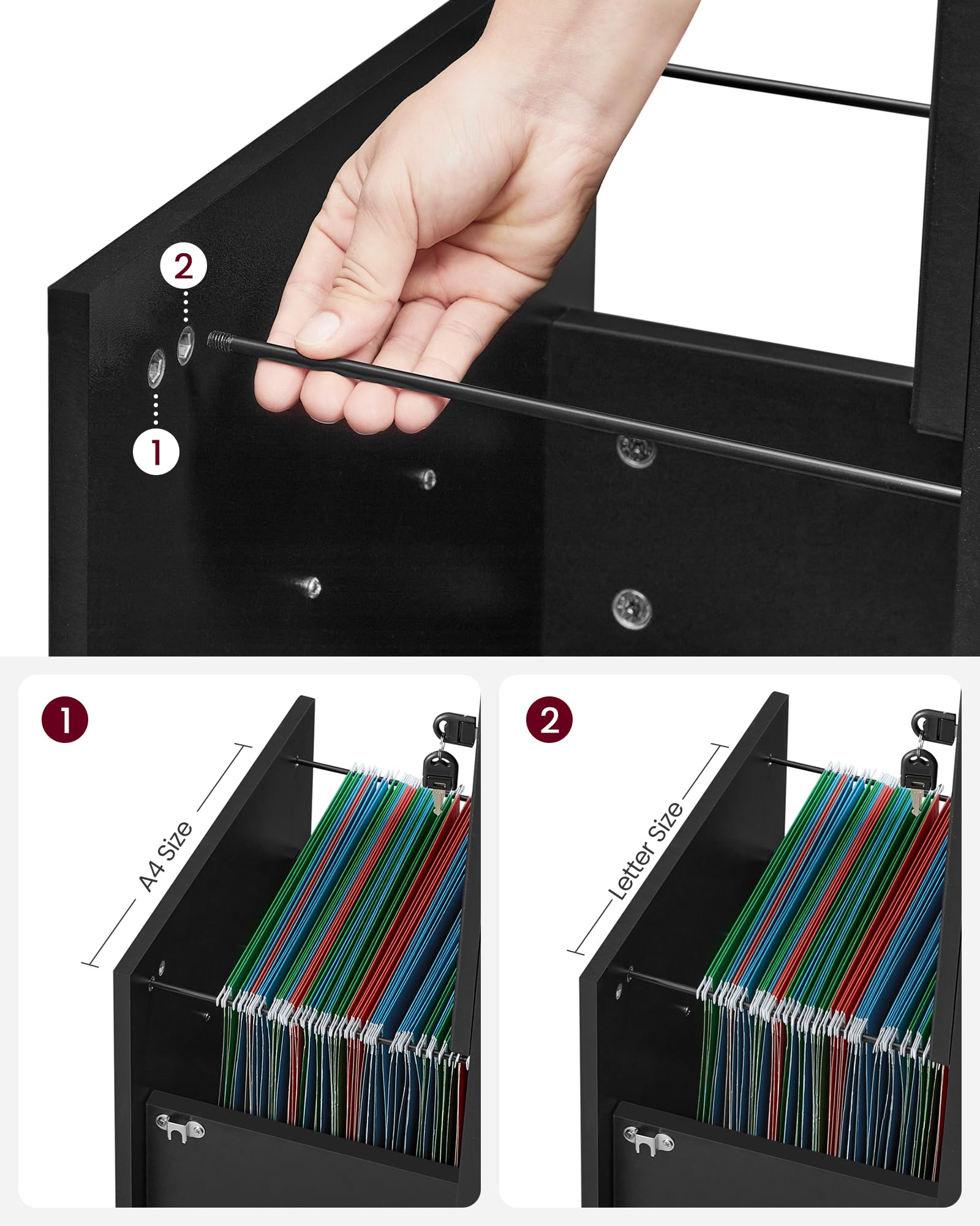 【TUTTO IN ORDINE】Con questa cassettiera, puoi organizzare e accedere facilmente ai documenti. I 2 cassetti spaziosi con guide regolabili sono adatti a cartelle di diverse dimensioni