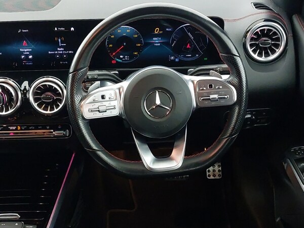 Parking package with reversing camera - EQB, Apple CarPlay, Android Auto, MBUX multimedia system with widescreen cockpit (2X10"" displays with touchpad), Hard-disk navigation, EQ nav services - map(range dis),dis charging stations,program of charging set/pre entry climate control incl remote retrival of charging status/range, Cruise control, DAB Digital radio, LED daytime running lights, AMG Line bodystyling including AMG front apron with integrated air curtain and AMG rear apron with diffusor optics, Rain sensor windscreen wipers, ARTICO man-made leather / MICROCUT microfibre upholstery, Ambient lighting with choice of 64 colour settings, Mirror package - EQB, Interior light package - EQB, Seat comfort pack - EQB, 40:20:40 split folding rear seats, 18"" AMG 5 spoke light alloy wheels