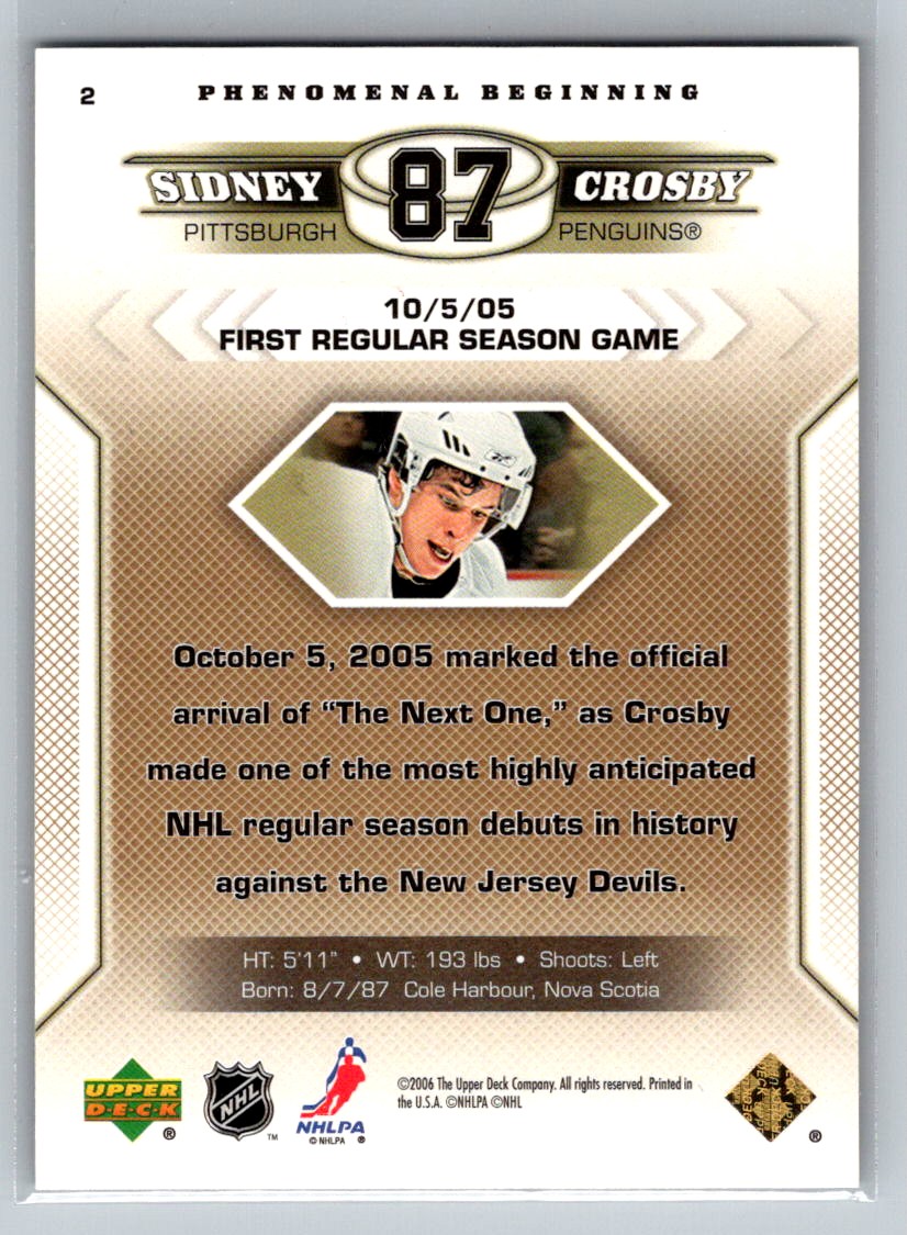 | 2005-06 Upper Deck Phenomenal Beginning Sidney Crosby Pittsburgh Penguins #2 |