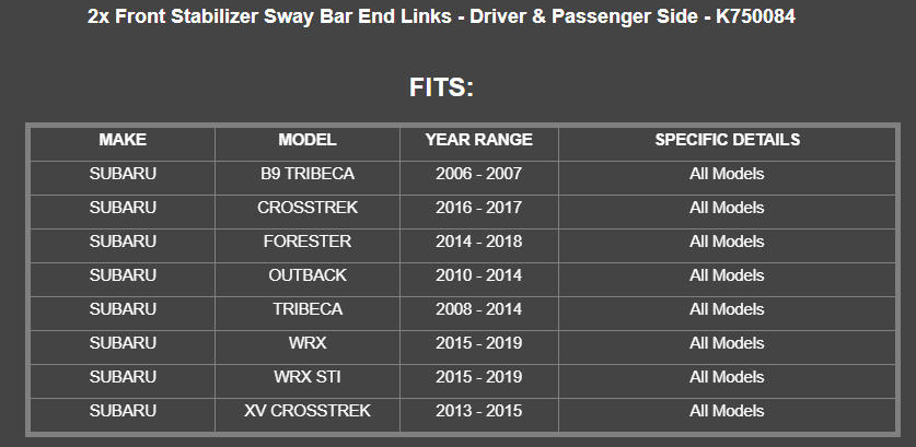 Package List: 2x Front Stabilizer Sway Bar