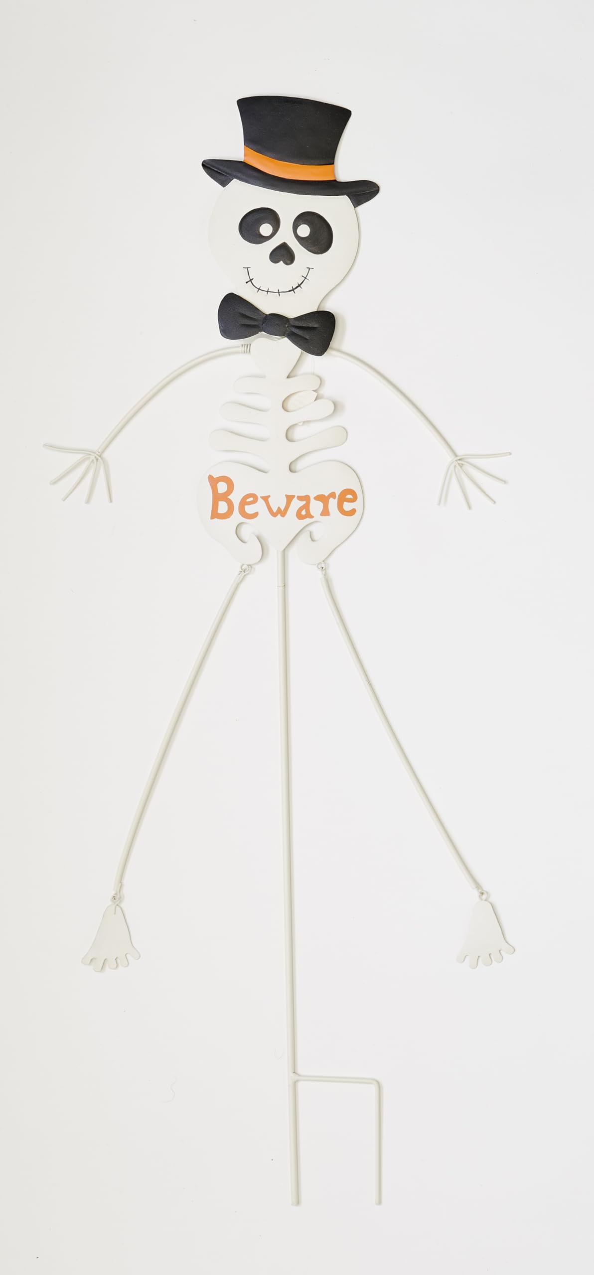 Add a spooky touch to your Halloween decorations with this eerie 36" Metal Skeleton Yard Stake. With its legs and feet dangling from the hip, this yard stake creates a creepy and eye-catching display in your lawn or garden. Perfect for setting the scene for a haunted house or adding a chilling vibe to your outdoor decor, it stands out with its unique and macabre design. Whether you're hosting a Halloween party or simply embracing the spirit of the season, our metal skeleton yard stake is sure to make a bone-chilling statement.