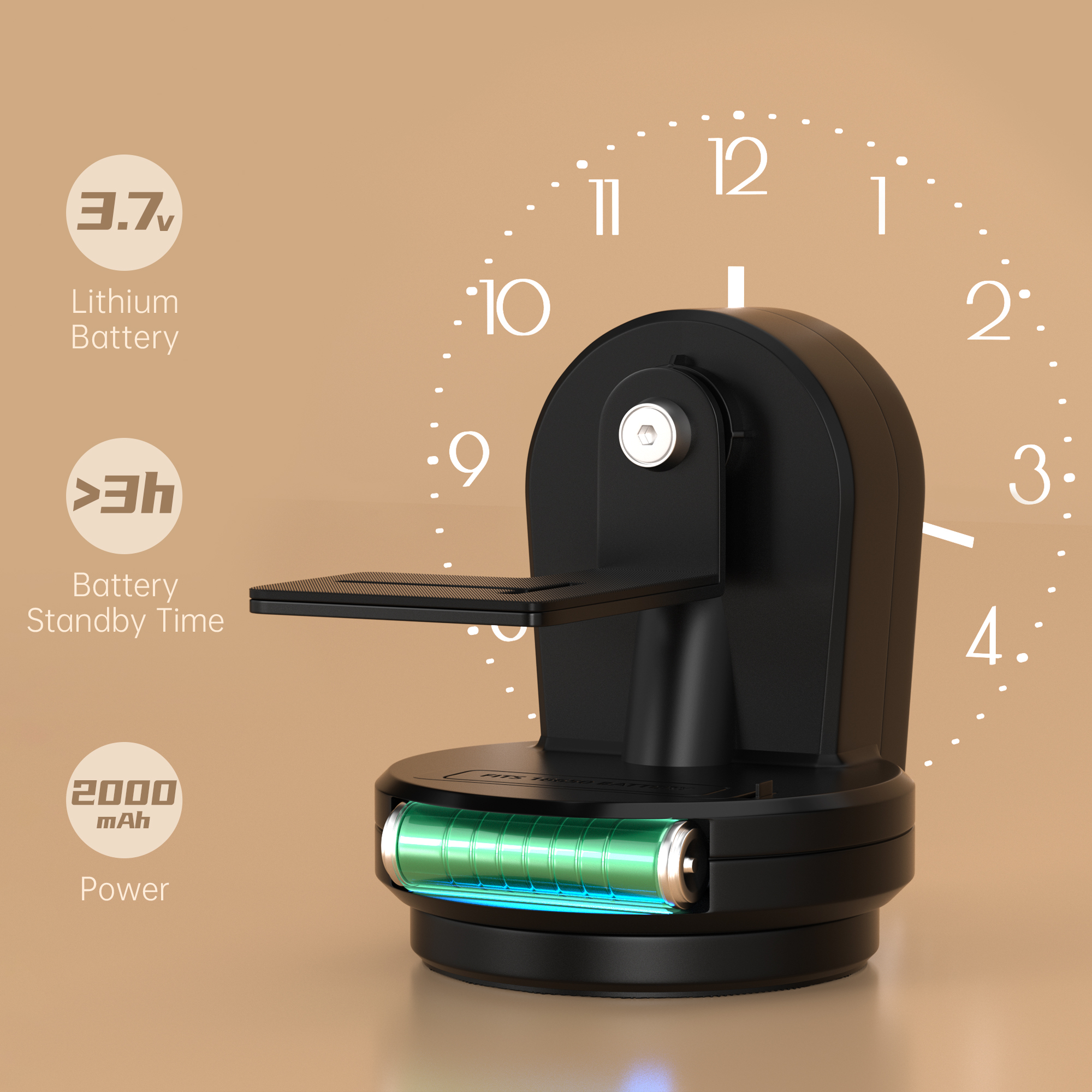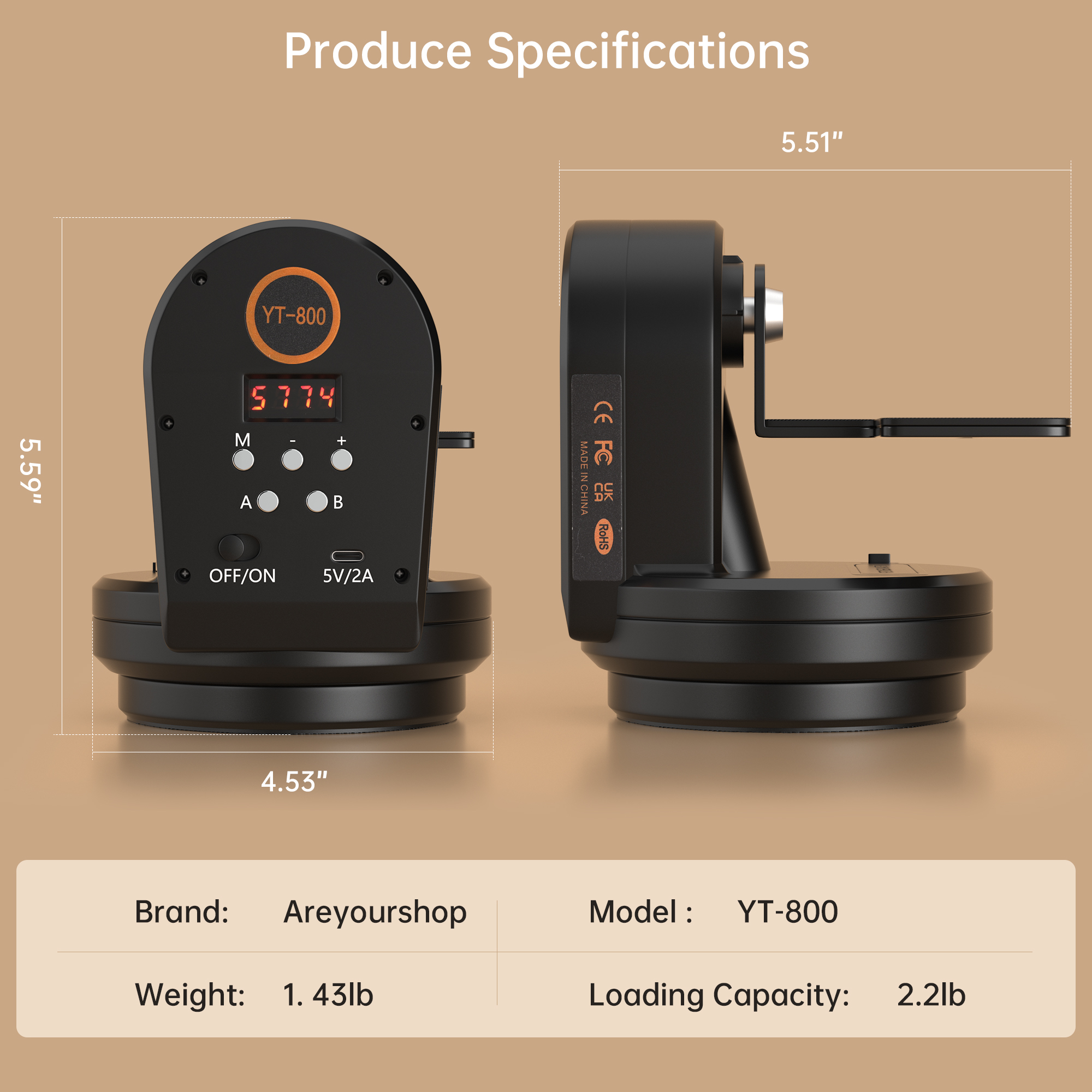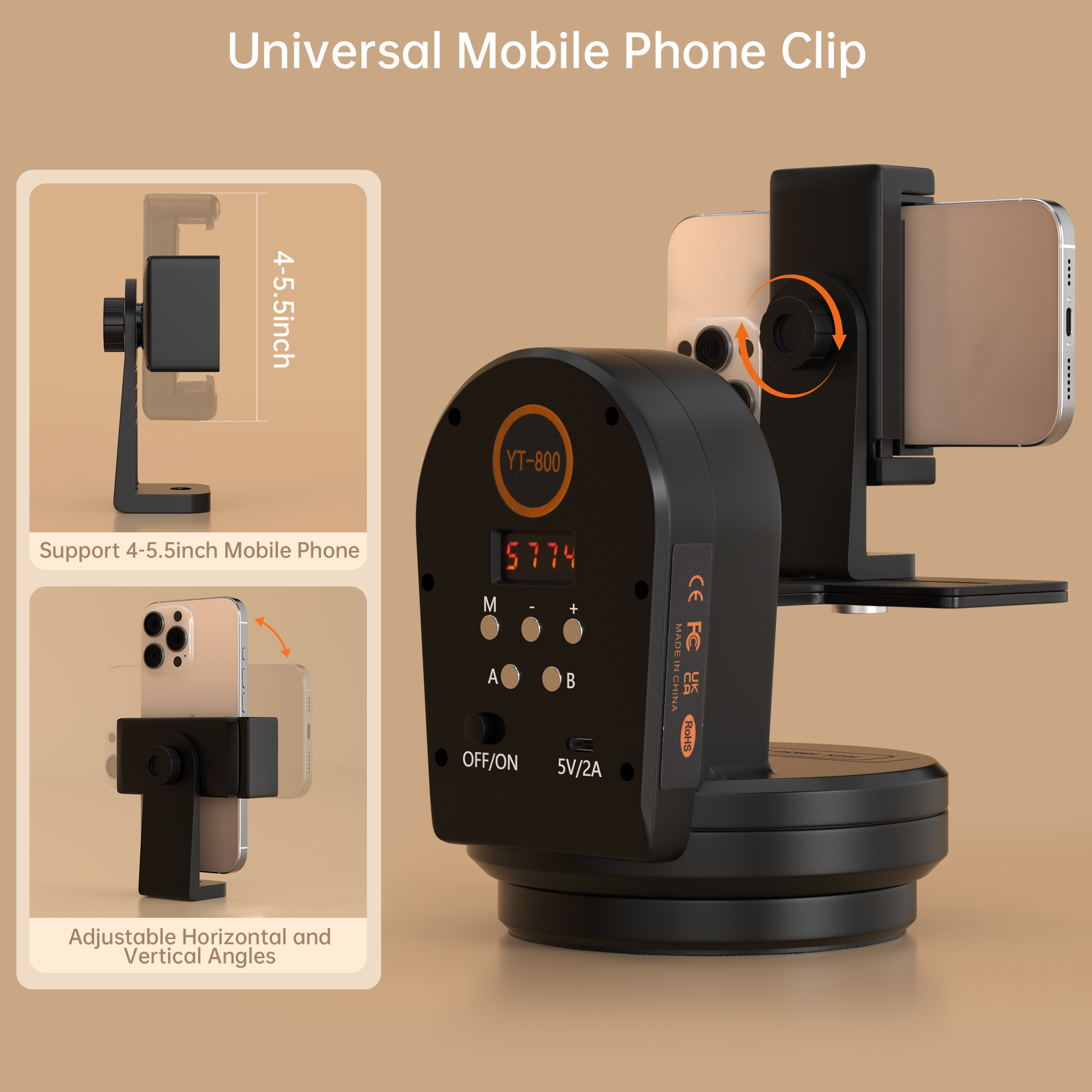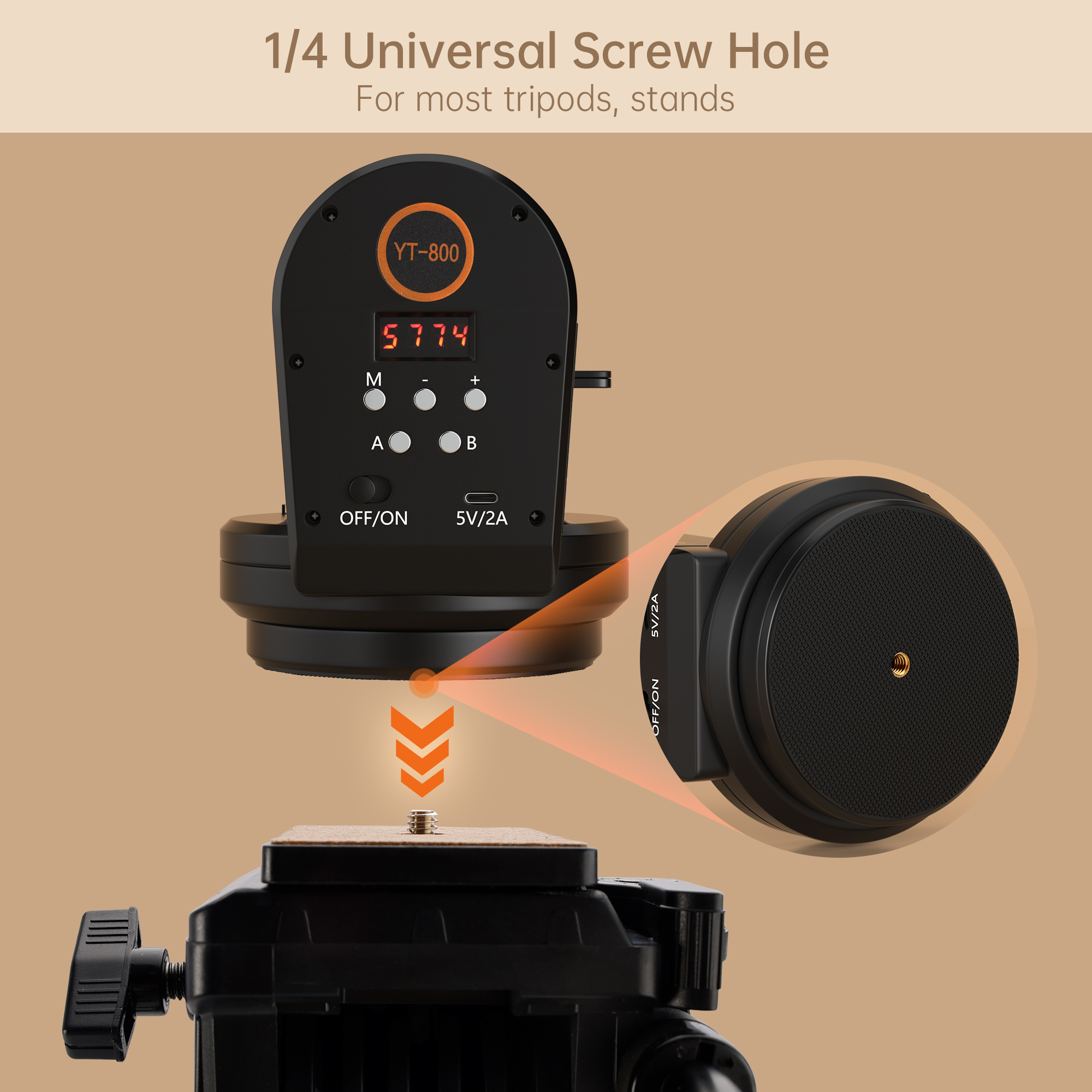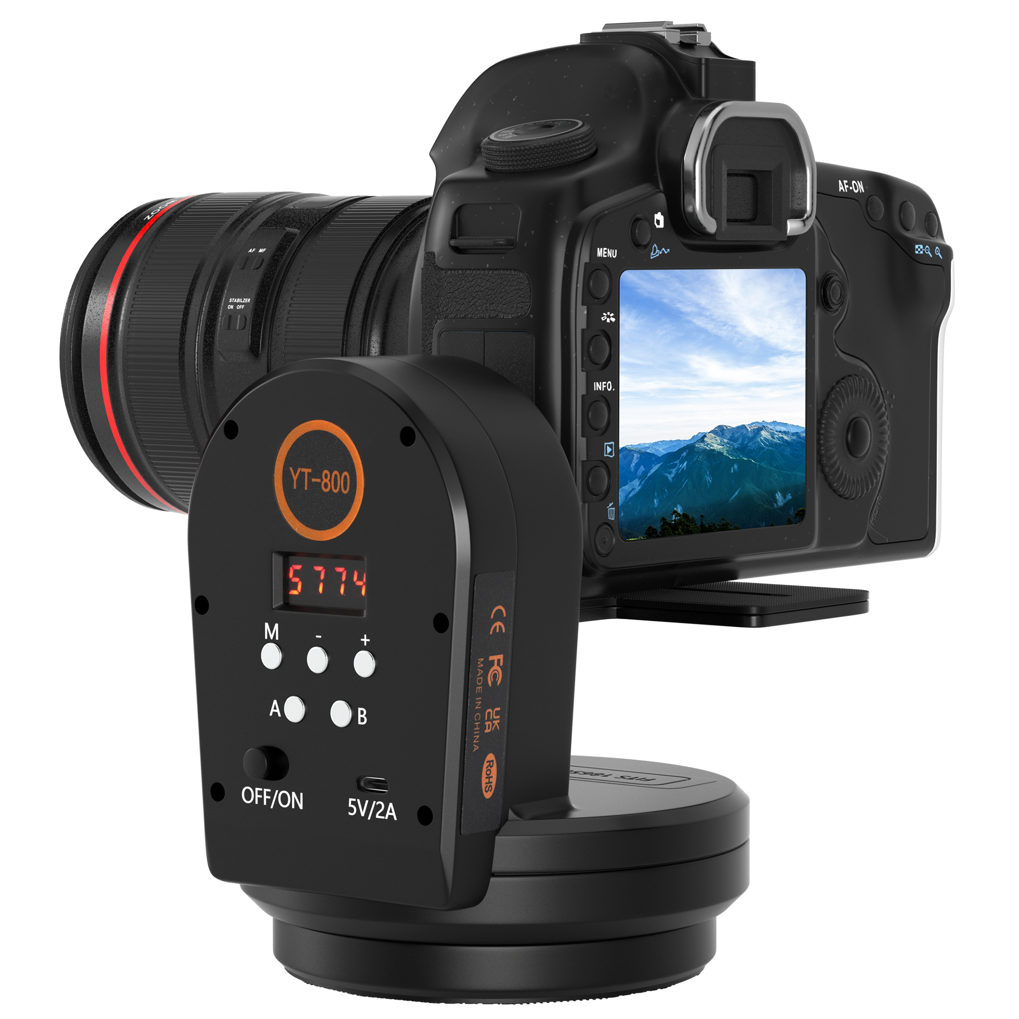 YT-800 remote control electric cloud platform is driven by step motor, with high positioning accuracy, high level of this gimbal, vertical vertical speed, speed regulation range from 2 to 0.05 rpm, and the speed regulation range is wide. There are 2 preset positions, 2 fixed positions can be set, and one -click retraction can be set with one click. Yundai can scan at the set speed between point A and B.YT800 Yundai bearing 1 kg, suitable for mobile phones, cameras, ordinary micro -single cameras. There are 1/4 screw holes under the gimbal, which can be convenient to install on the tripod. The built -in 18650 battery can be widely used in live broadcasts, outdoor photography and other occasions.